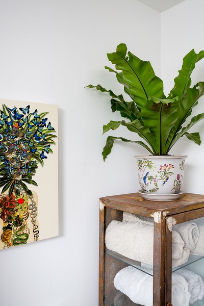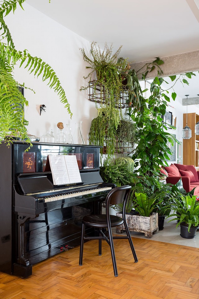 其实,装饰就是对各种物品的进行恰当的混合搭配:一台心爱的钢琴,一些经典的设计作品如Paulistano标志性的座椅,跳蚤市场淘换的床,以及各种挂画,各地手工艺等等。看样子房主有轻度收藏的爱好~~从各式装饰物中甚至还发现有中式的柜子、陶瓷花瓶等~
