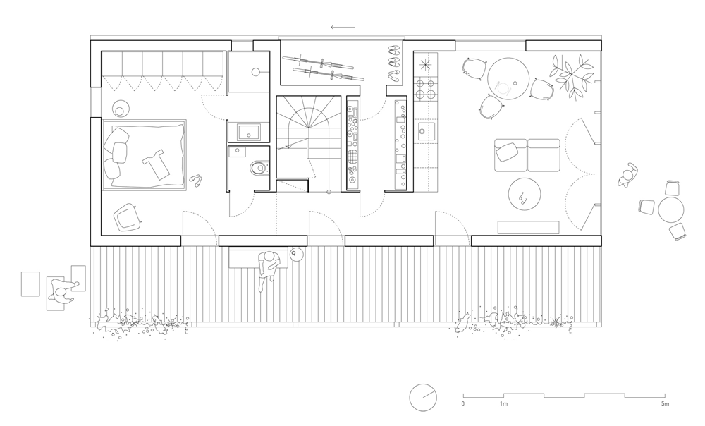 由于斯洛伐克地区大部分时间天气温暖,所以将玻璃山墙置于北侧便理所应当。建筑东侧为外廊,提供了惬意舒适的纳凉休闲空间。