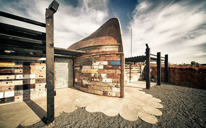 为了让建筑最大程度地契合周边的环境,来自加州的Claudia Turrent + Alejandro d’acosta Arquitectos工作室利用港口附近几艘废弃的旧船和一些回收的材料,建造了一个位于墨西哥重要葡萄酒产区的酿酒工厂,看上去古朴沧桑。建筑的布局参照了山势与星象以及风向,根据这些因素将不同的酿酒设施置于最适应的位置。呈中心辐射的布局方式,被认为是最有效率的方式之一,能够最大限度地减少生产流程的距离。