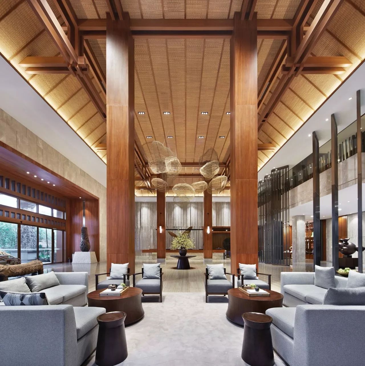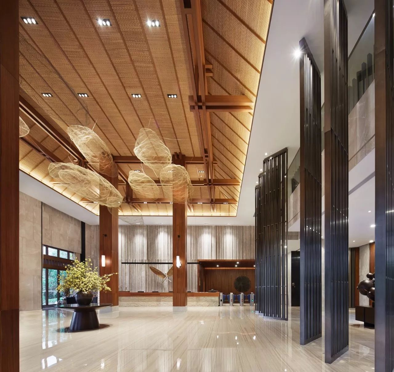 作为带有酒店性质的温泉项目,大堂当然是设计中最重要的部分。