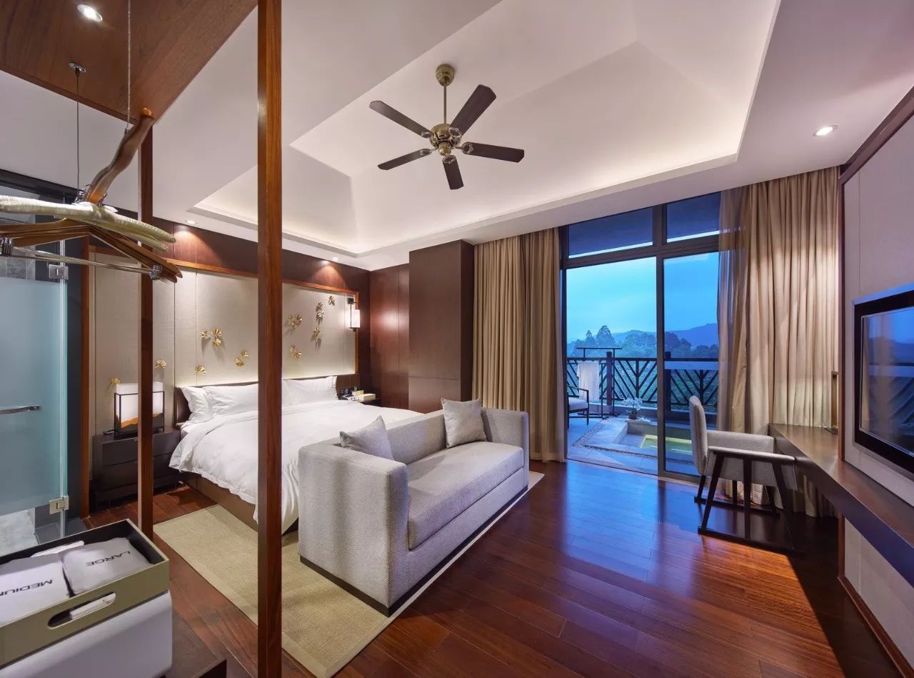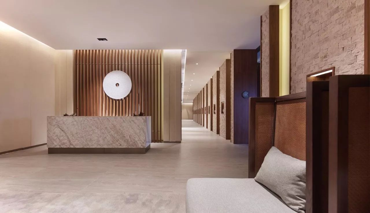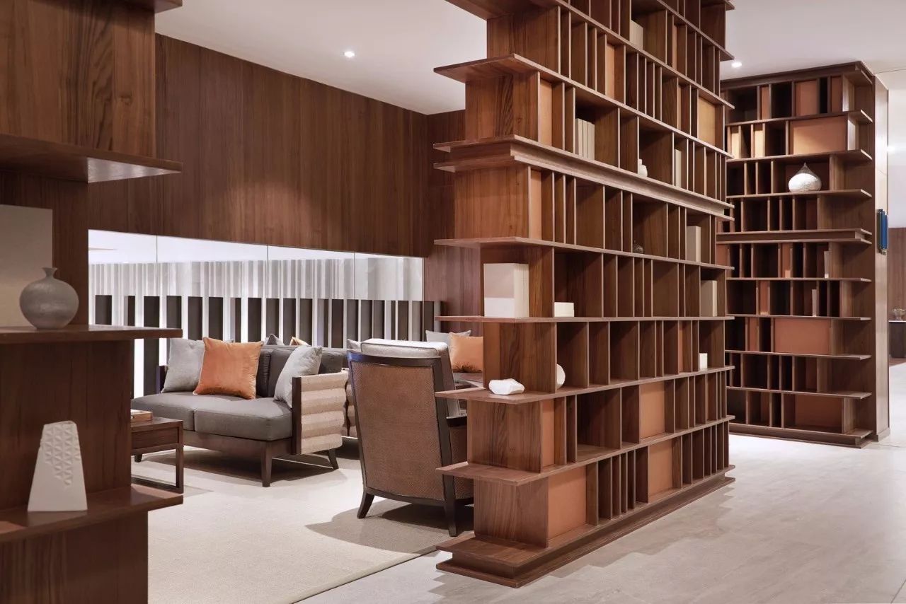 第二步则是团客和散客在大堂办理入住手续后,能迅速进入旁边的更衣室,减轻大堂人声鼎沸的压力。在更衣沐浴后,或者进入园林式户外温泉区,或者直接上二楼休息区。在二层休息区,设计师则将SPA区、休息区与餐饮、棋牌、阅读、儿童区先作大的功能分割,将健身房、球类活动室用玻璃作完全隔音的封闭式处理,以书吧作为几个功能区的半遮断式衔接,起到进一步消音的作用。这一部分,尤其应该首先关照休息等候区的客人,不能受噪音影响,只有人声隐约的同时,却不致扰人清静。譬如“鸟鸣林更幽”。