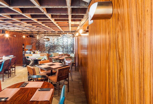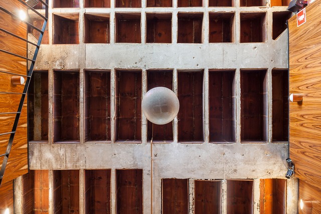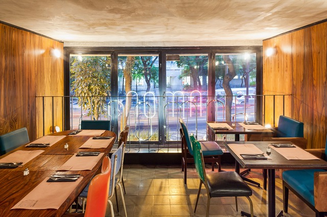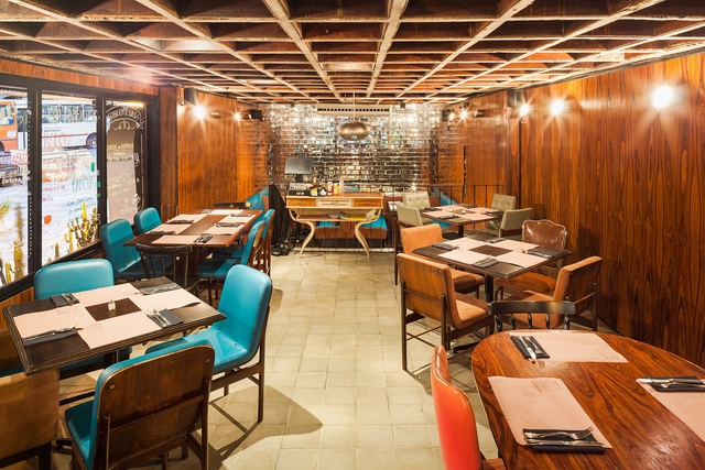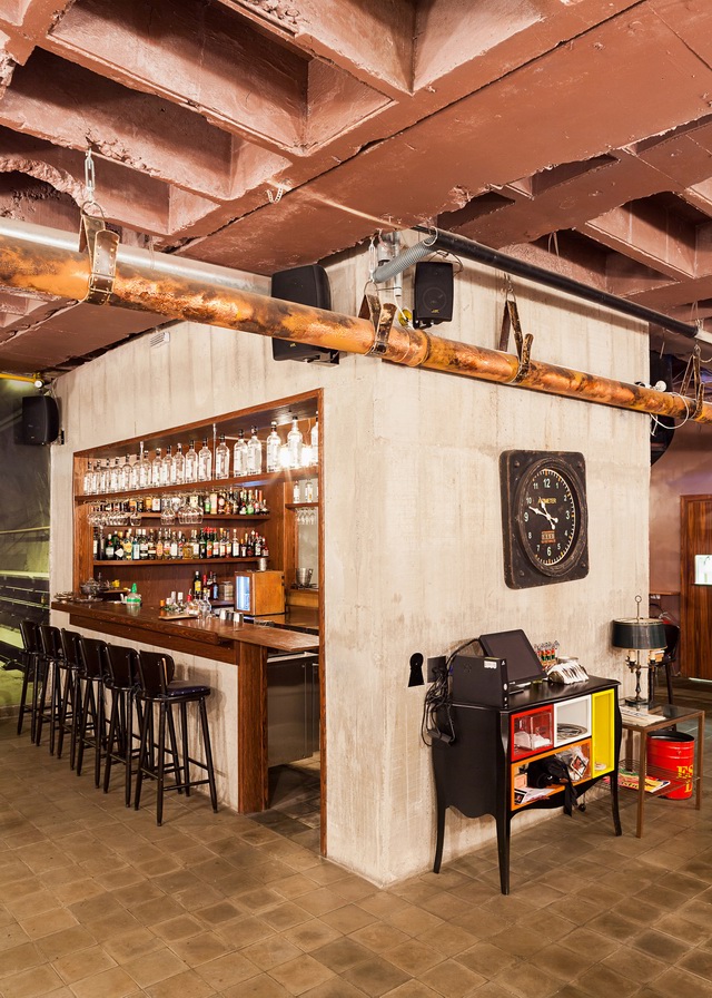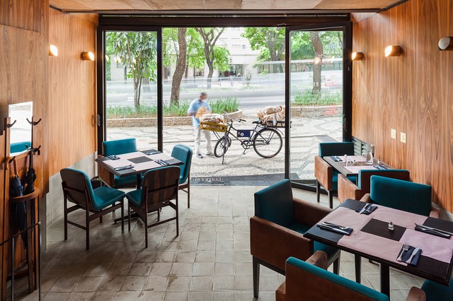 MM18 Arquitetos设计的Ramona餐厅的整体室内风格延续了这座老建筑的古老韵味,将建筑结构坦率地暴露在外,比如头顶粗糙的混凝土井字梁一下将这里的氛围定位在vintage甚至略带粗野主义倾向的风格。让一切显得亲近随意,好像在说:“亲,用餐请随意,不必拘束,想在家一样……”