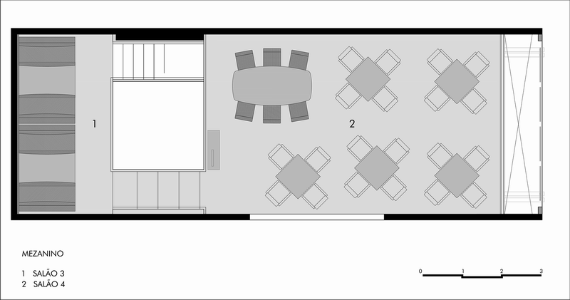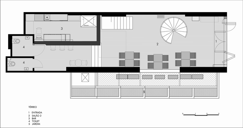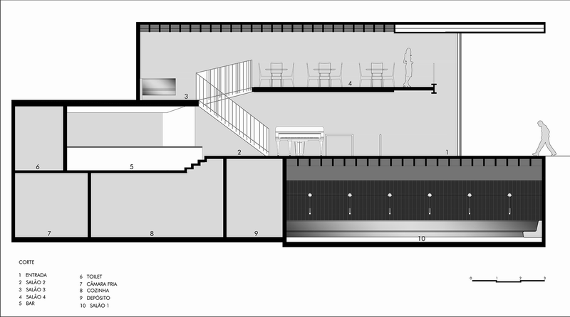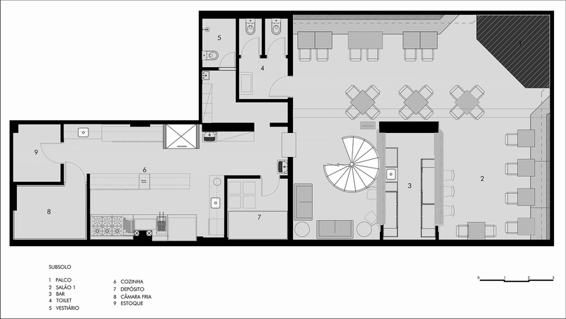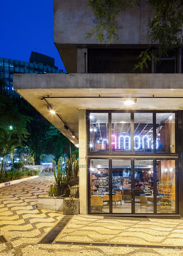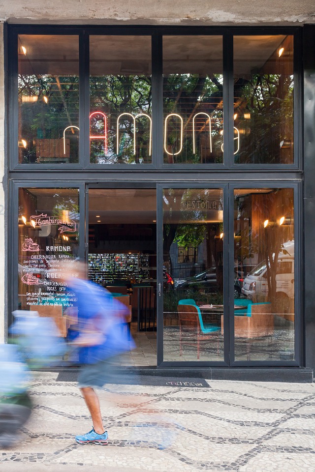 Ramona餐厅位于巴西圣保罗的市区一座老建筑的转角位置,占据了建筑的一层地下空间以及楼上一层半的空间。餐厅同时还包括一间位于地下的酒吧以及Pocket Show