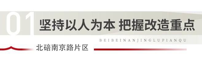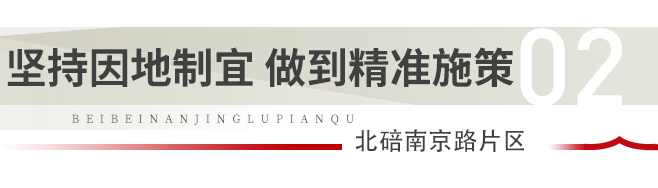 北碚区牢固树立以人民为中心的发展思想,以“共建共治共享”的社会治理格局为目标,通过综合整治乱象、完善功能配套、重塑商业业态,实现老旧小区环境治理、基层社会治理和居民环境提升、社区服务水平提升“双治理双提升”。针对广大居民对南京路片区提升改造的强烈意愿,区政府注重统筹协调,全面遵循“美好环境与幸福生活共同缔造”理念,重点在提升基础设施和完善功能配套上下功夫,优化区域交通体系,加装电梯,改造地下综合管廊,配建地下停车库,让南京路片区实现完美蜕变。