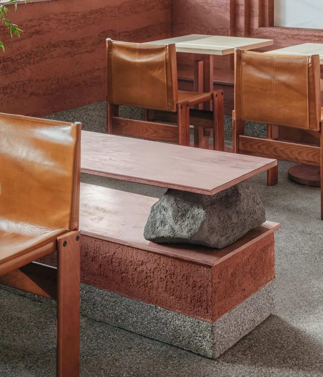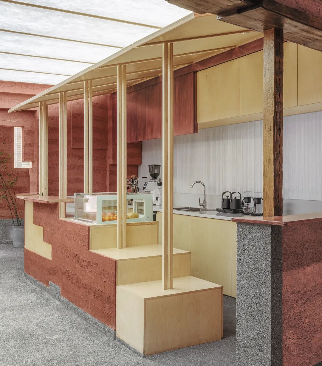 水洗石的基座与桦木板茶棚©朱雨蒙