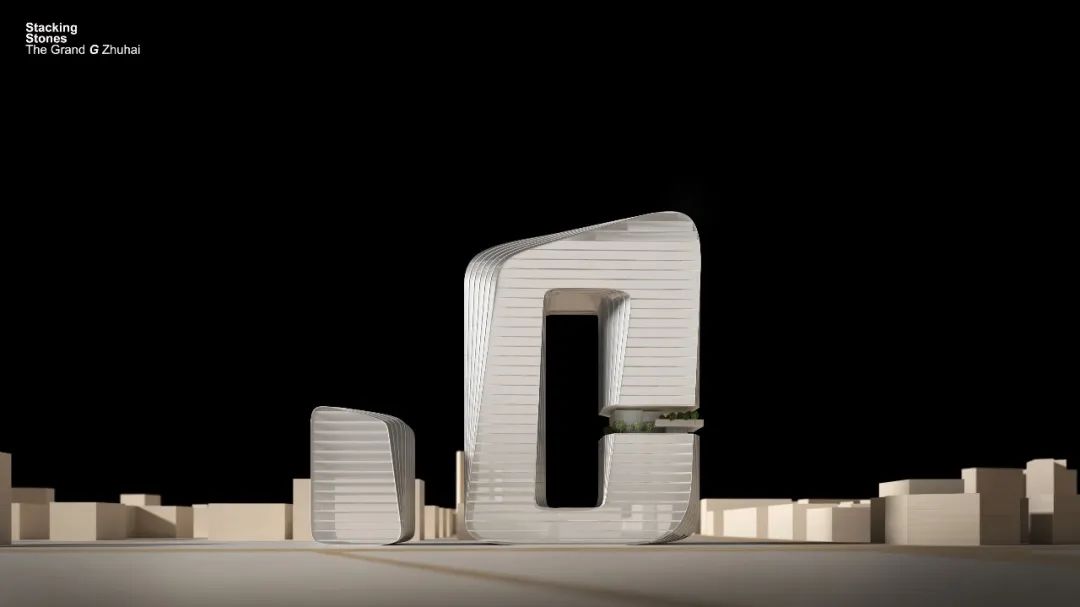 点击观看概念阶段项目视频Click to view the video 东水连香港,南壤接澳门,背倚珠江三角洲经济腹地的珠海香洲区,拥有着构建城市战略高地的极佳区位优势。上世纪90年代,香洲北工业区顺势而出,历经几十年风雨变迁,这里亟待一场蝶变升级。珠海海滨之上,一组巨石相叠拔地而起,千百年来昂然傲视海湾,在当地被视为“吉祥之石”。Strategically located in the heart of the Pearl River Delta in the vicinity of Hong Kong and Macau, Zhuhai is fast becoming the Delta region’s infrastructural capital. The Xiangzhou North Industrial Zone once fueled Zhuhai’s rapid development in the 1990s. Now, it is undergoing a transformation that sees it converting into a high-tech industrial-city complex. The project’s design is inspired by the striking rock formations that sit along the Zhuhai coast. For thousands of years, they have proudly looked down on the bay and are known locally as "auspicious stones". 吉祥之石 Auspicious stones Aedas执行董事胡庆峰带领团队,与广东都市建筑规划设计有限公司组成联合体,为珠海香洲北工业首开区打造极具地标特色的产城融合新方案——兴格金泽大厦。设计来源于“吉祥之石”这一城市图腾的灵感,简洁有力的手笔在城市天际线上一气呵成,灵动而优雅,勾绘出香洲北石溪公园山脚的叠石写意。这是一座城市的景窗,镜山水库和石溪公园的的山水绿卷,透过这框景,层层渗入香洲北城市的每一个角落。Aedas Executive Director, Kelvin Hu, leads Aedas to reinvigorate the industrial zone alongside Guangdong City Construction Company Planning Design Limited Company. The new mixed-use complex, Xingge Jinze Building is designed to be Zhuhai’s new landmark, emblematic of the prosperity to come for the coastal city. Simple yet elegant, the design concept borrows from the symbolic “auspicious stone”, with a topography that complements the skyline like freehand brushwork. Blessed with abundant surrounding greenery, the development also captures the beauty of Jingshan Reservoir and Shixi Park as if it were framed artwork. 地标性建筑轮廓Unique architectural silhouette 项目坐落在香洲北工业区的西北角,紧邻主干道梅华东路,远眺香洲湾和珠海大剧院,有着极佳的城市展示面,是片区的门户形象。同时城市绿轴贯穿地块,面山望水,周边滨海景观、生态山林景观、现代都市景观不一而足,有着得天独厚的景观优势。Xingge Jinze Building sits at the northwestern end of the Xiangzhou North Industrial Zone. With an impeccable location adjacent to the city’s main high-way, it is surrounded by lush forests and lakes, overlooking Zhuhai Theatre and Xiangzhou Bay.