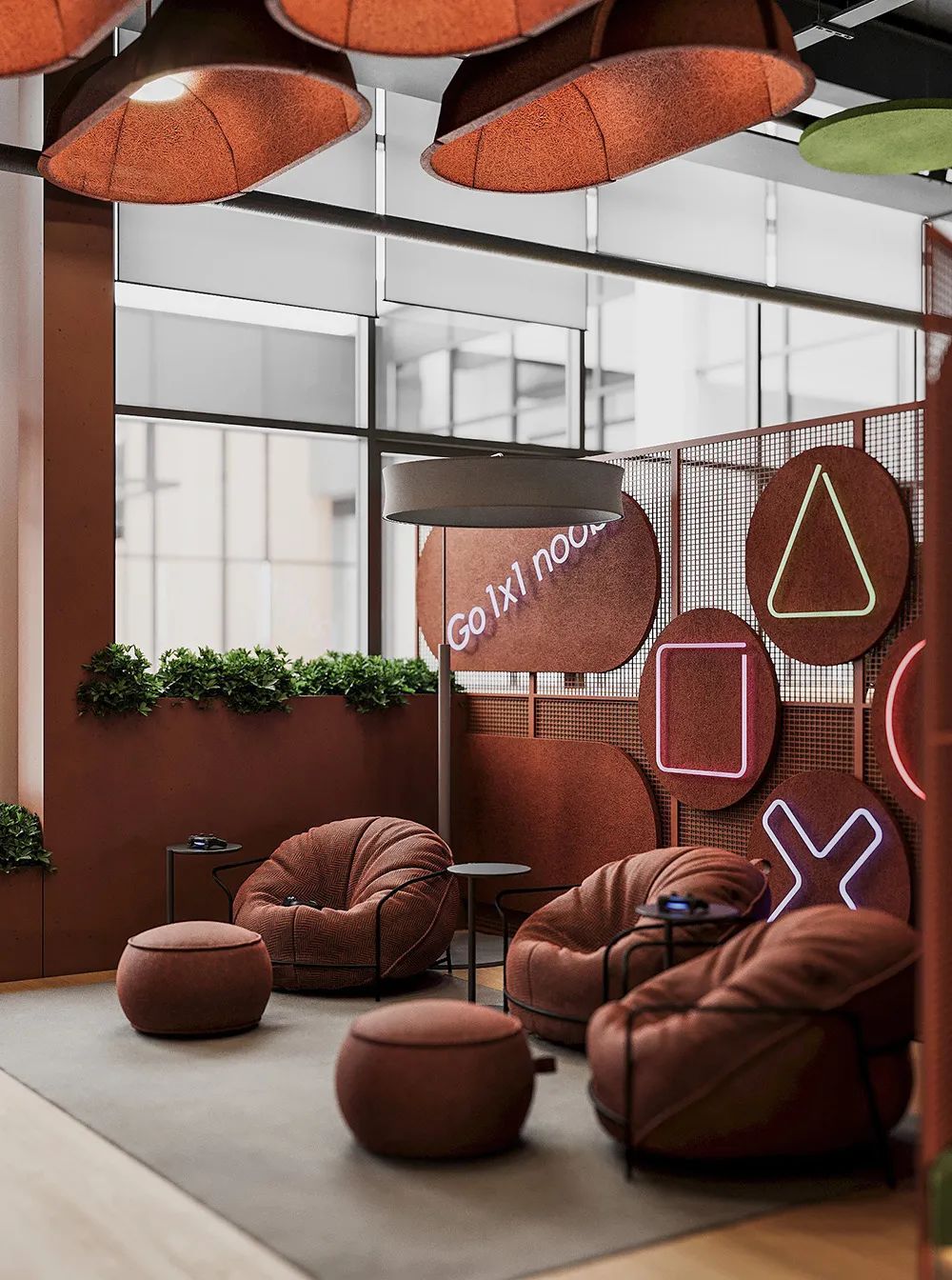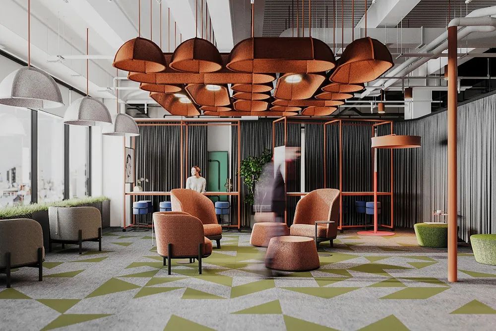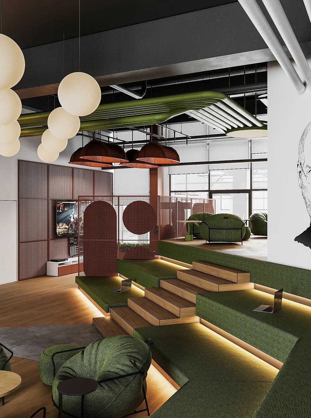 Tags:科技,超大型办公场所、开放协作多元共享、暖色调、声学方案、员工福祉、时尚办公网