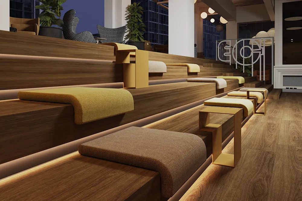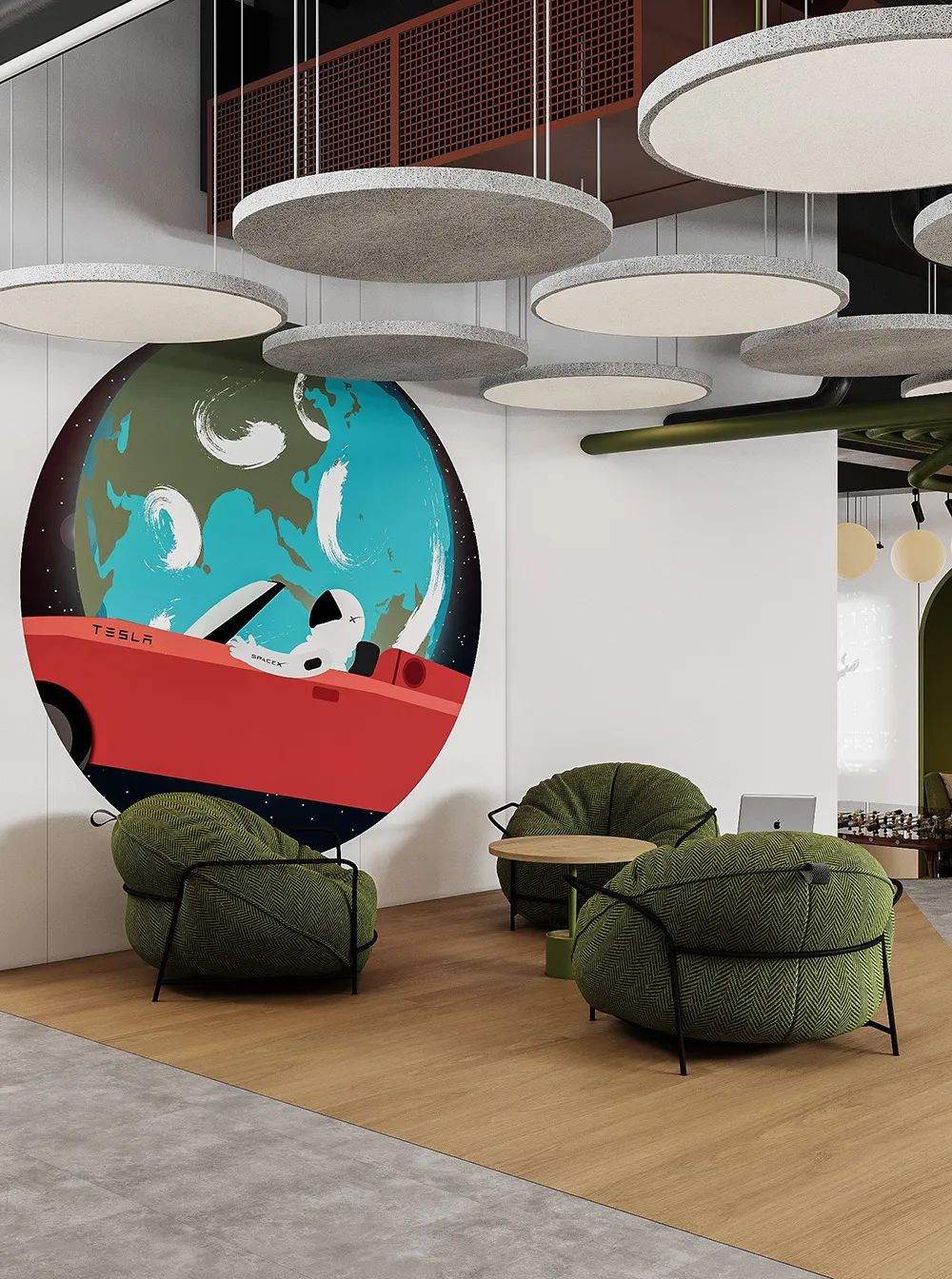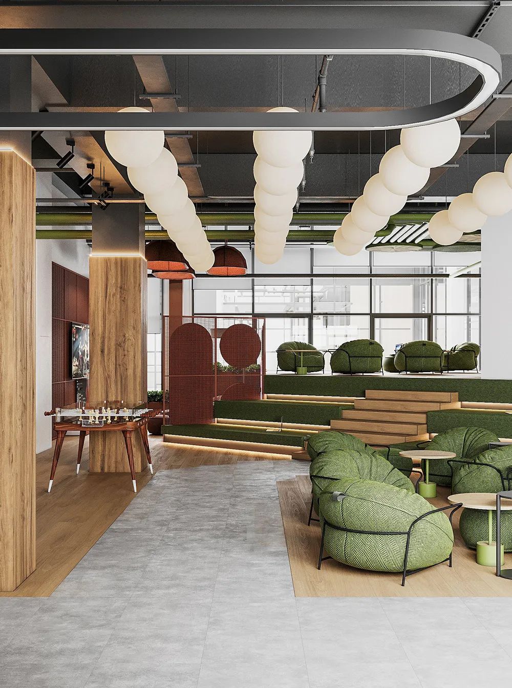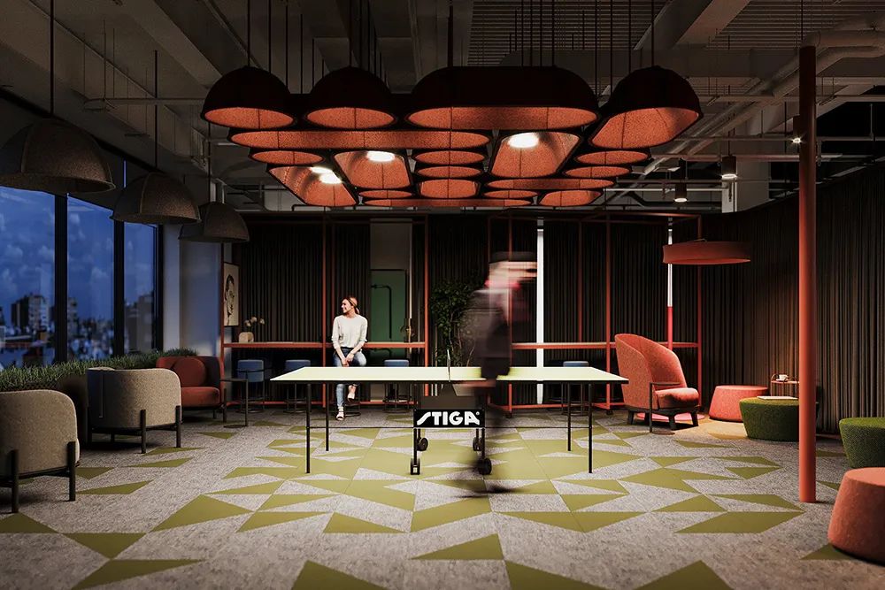 Tags:科技,超大型办公场所、开放协作多元共享、暖色调、声学方案、员工福祉、时尚办公网