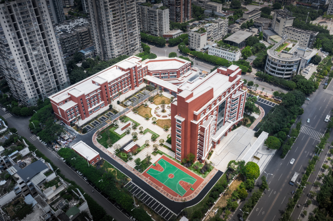 如何优化校园空间结构是本次项目的关键。市设计院设计团队通过梳理车行、人行进入方式,将有隔断的运动场地靠角设置,同时,整合原有的庭院与使用率低的绿化空间,形成校园环道和中心花园,使之在主教学楼和宿舍之间形成中轴对称的景观序列。