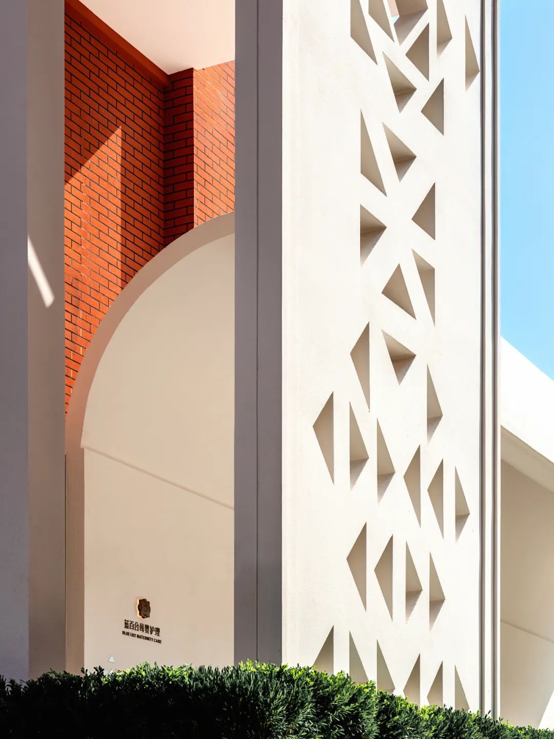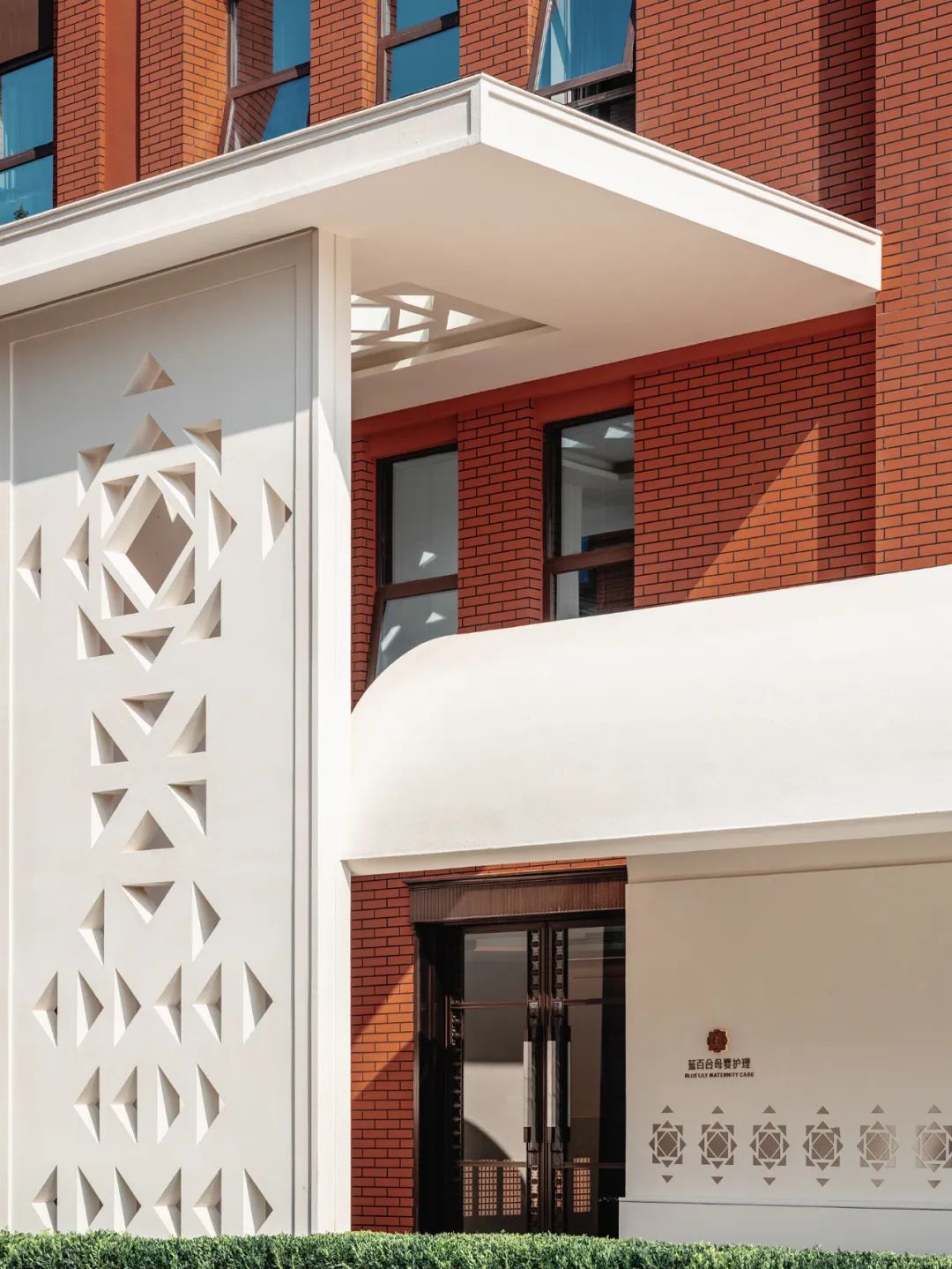 空间延续园区建筑风貌的文艺感,呈现东方意韵的品牌基调。原创的艺术装置——绽放的百合悬置于大厅上空,是品牌对新生喜悦的表达,也是对月子旅程的美好期许。