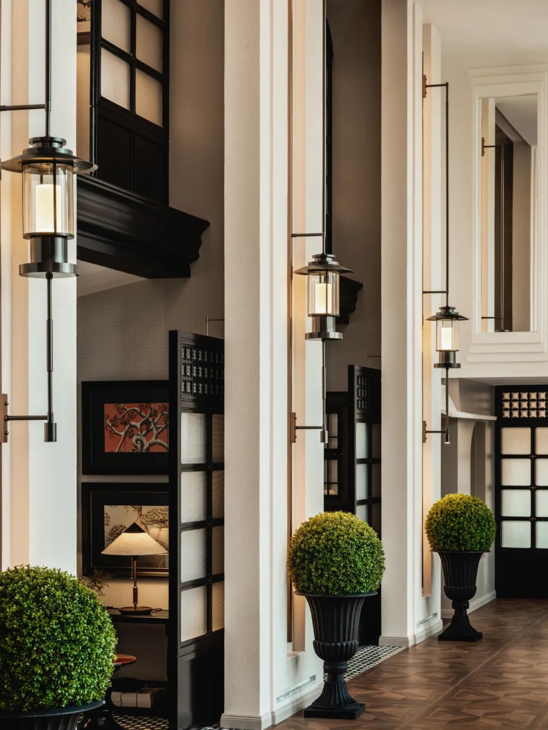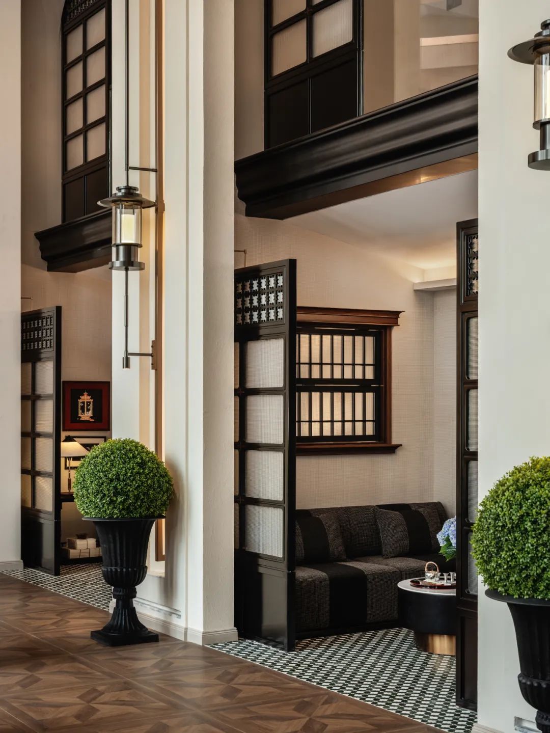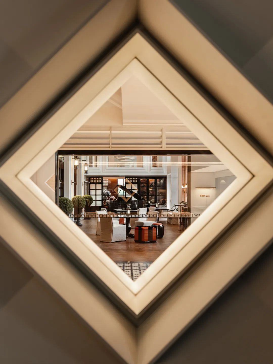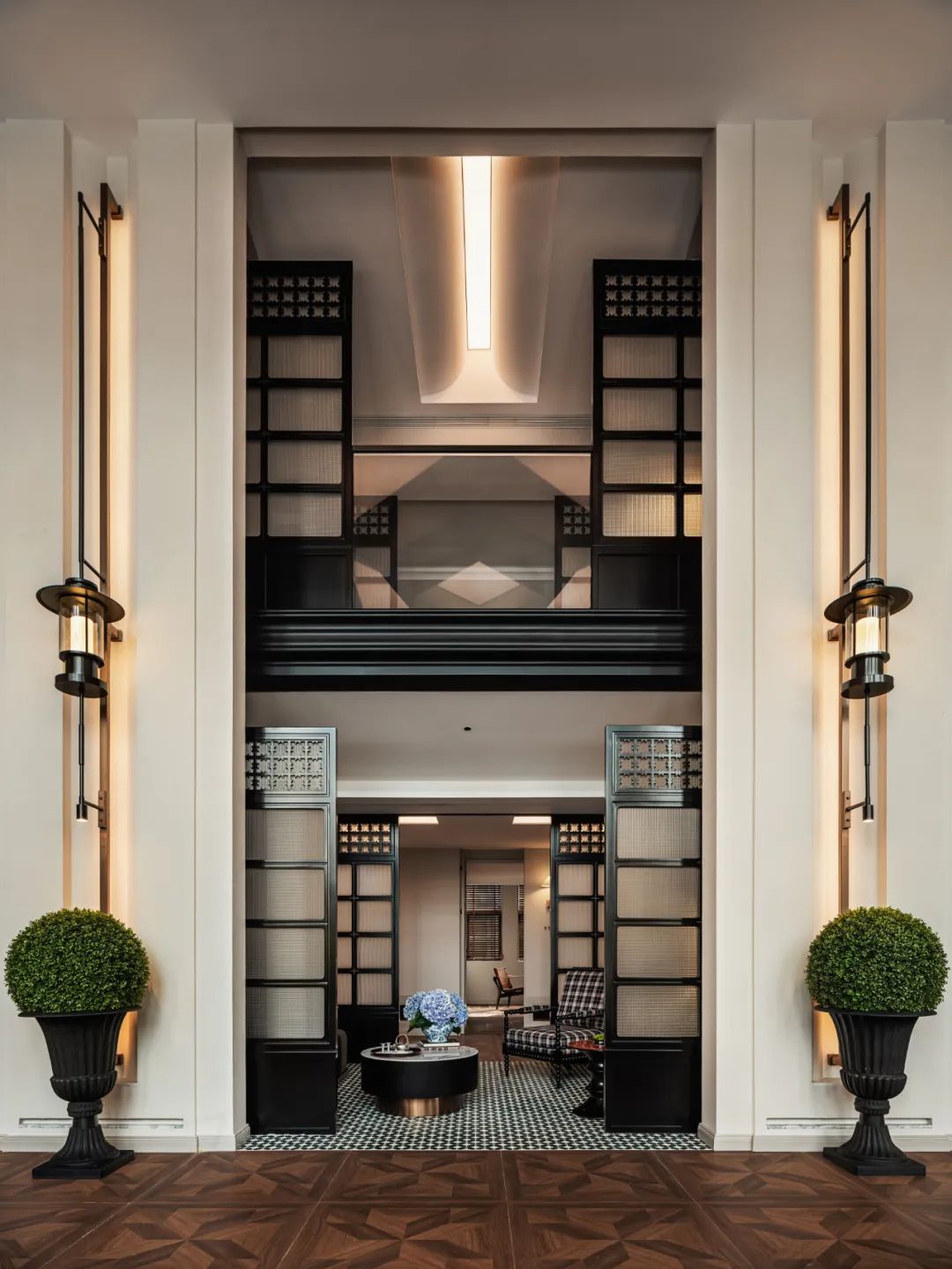 经过序廊,转入接待前厅【香隅】,经过设计重构的艺术装置——“绽放的百合”在此迎接宾客,这是品牌的符号,也是空间的IP。将品牌语言融入空间,激发对话,也能帮助客人建立品牌记忆。