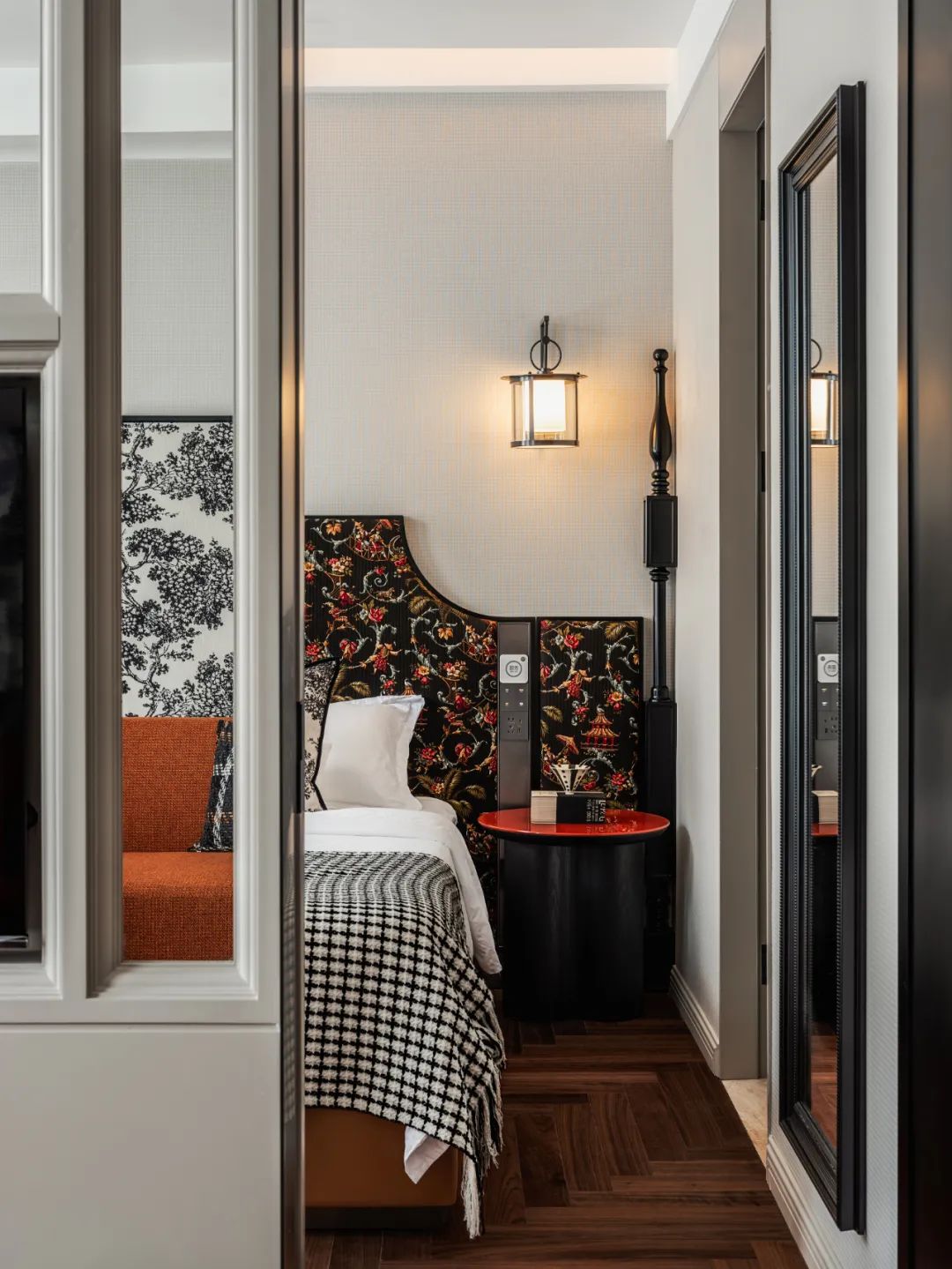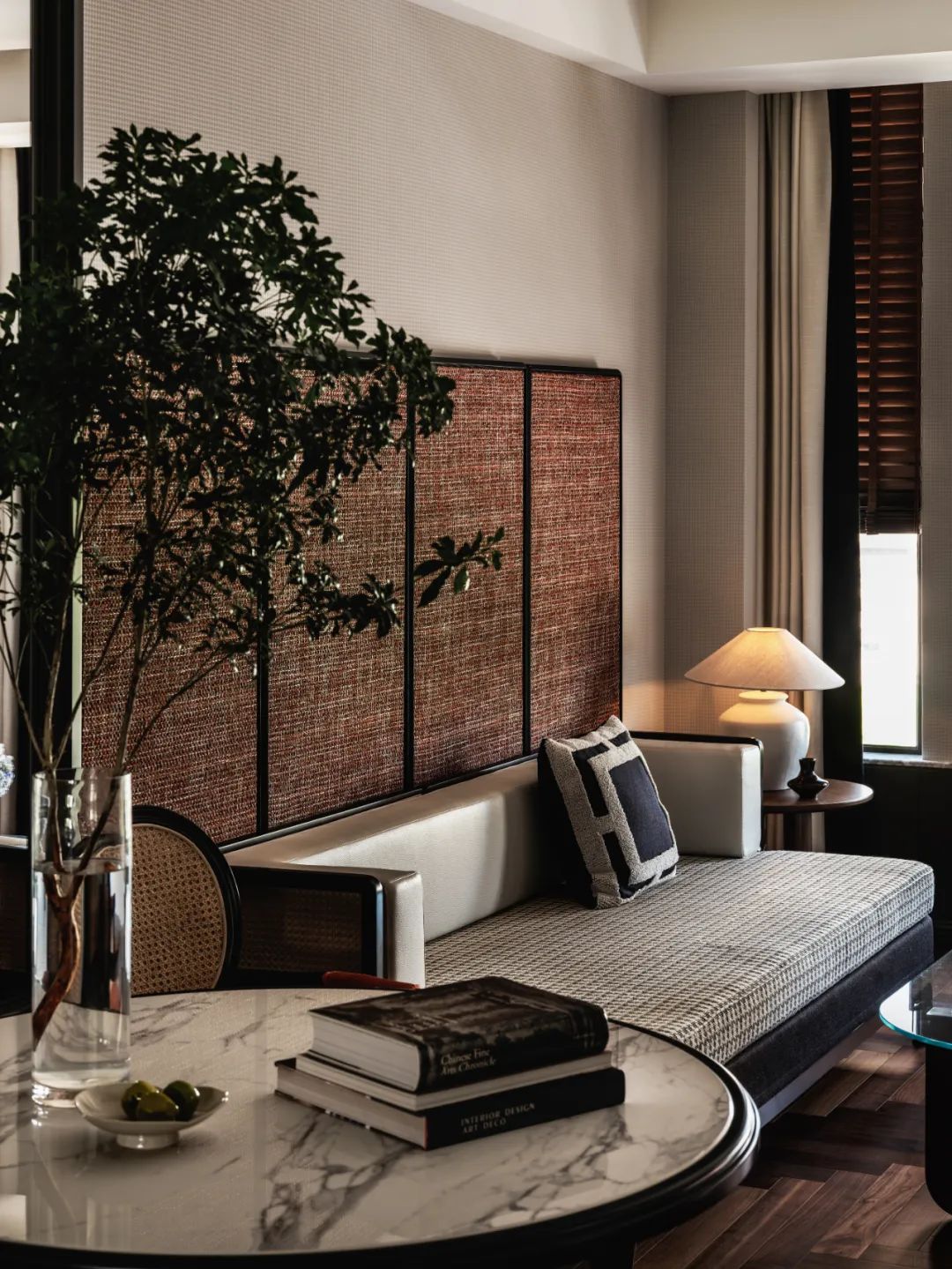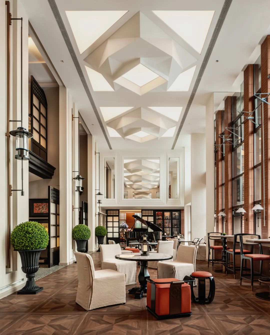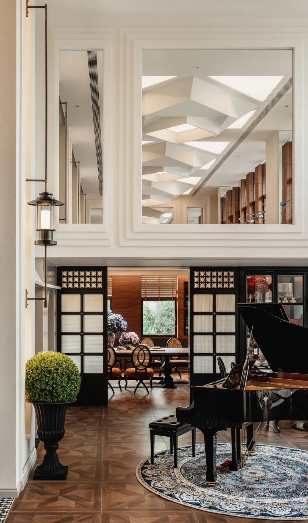 On one side of the empty hall, there is a covered bridge. There are 6 compartments above and below the covered bridge, of which 3 are guest rooms under the corridor, and 3 are piano, chess, painting and calligraphy rooms respectively.The multi-dimensional spatial hierarchy and functional support hope to present a richer and more interesting customer experience.