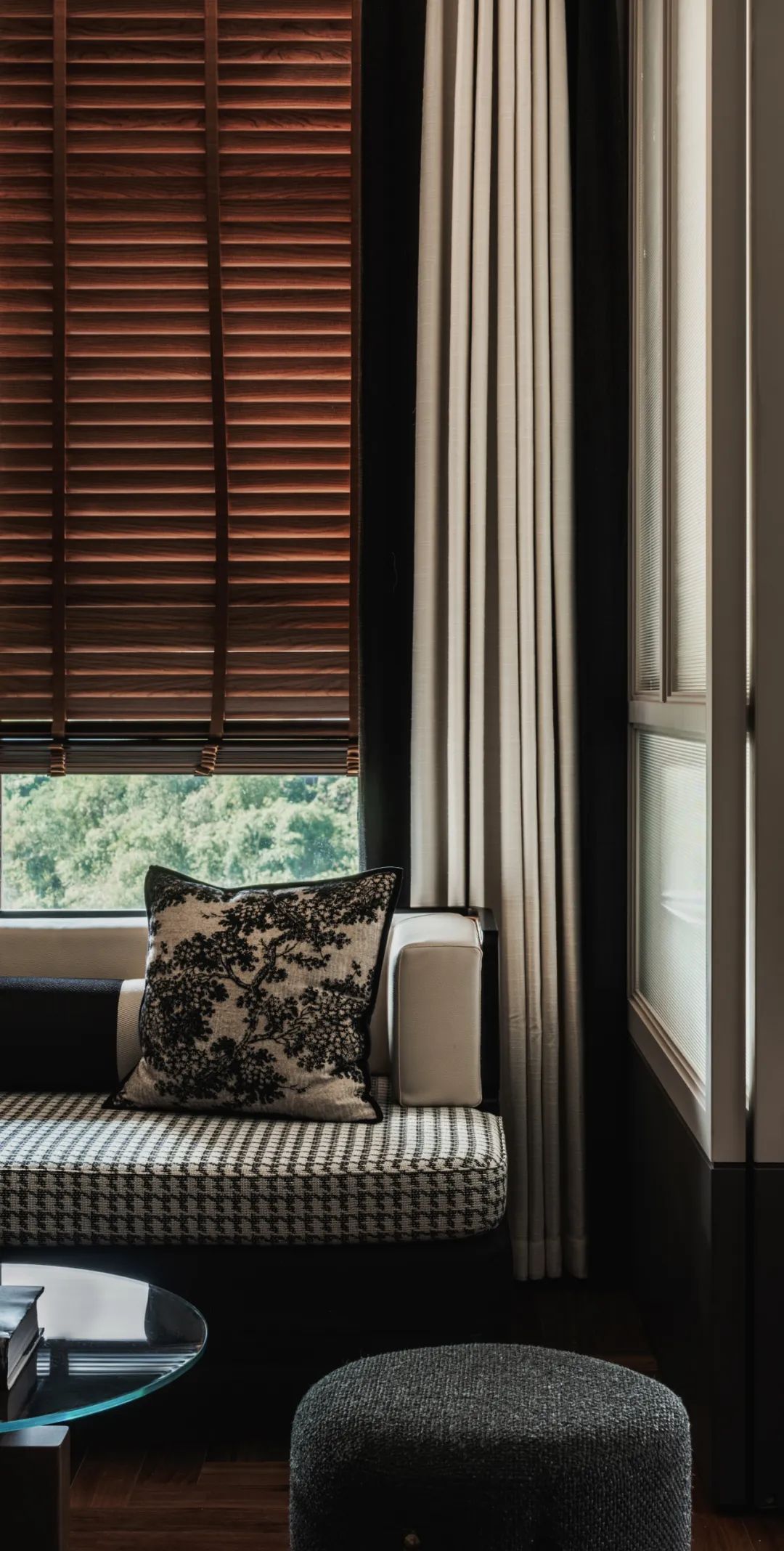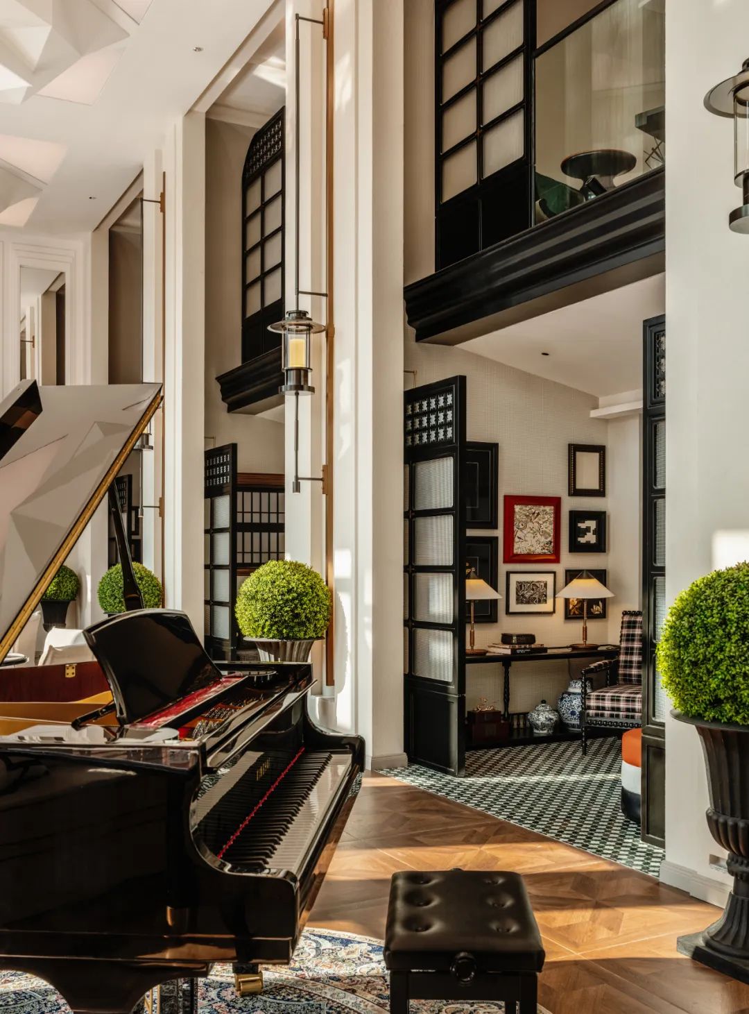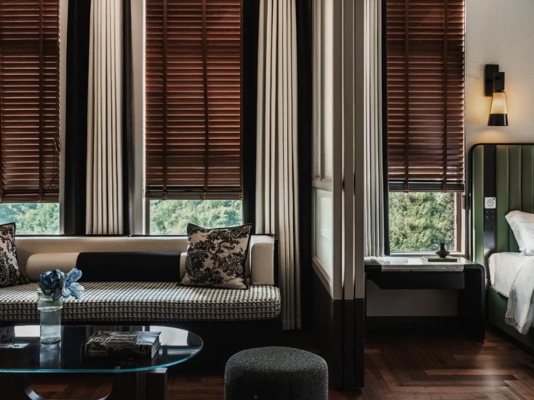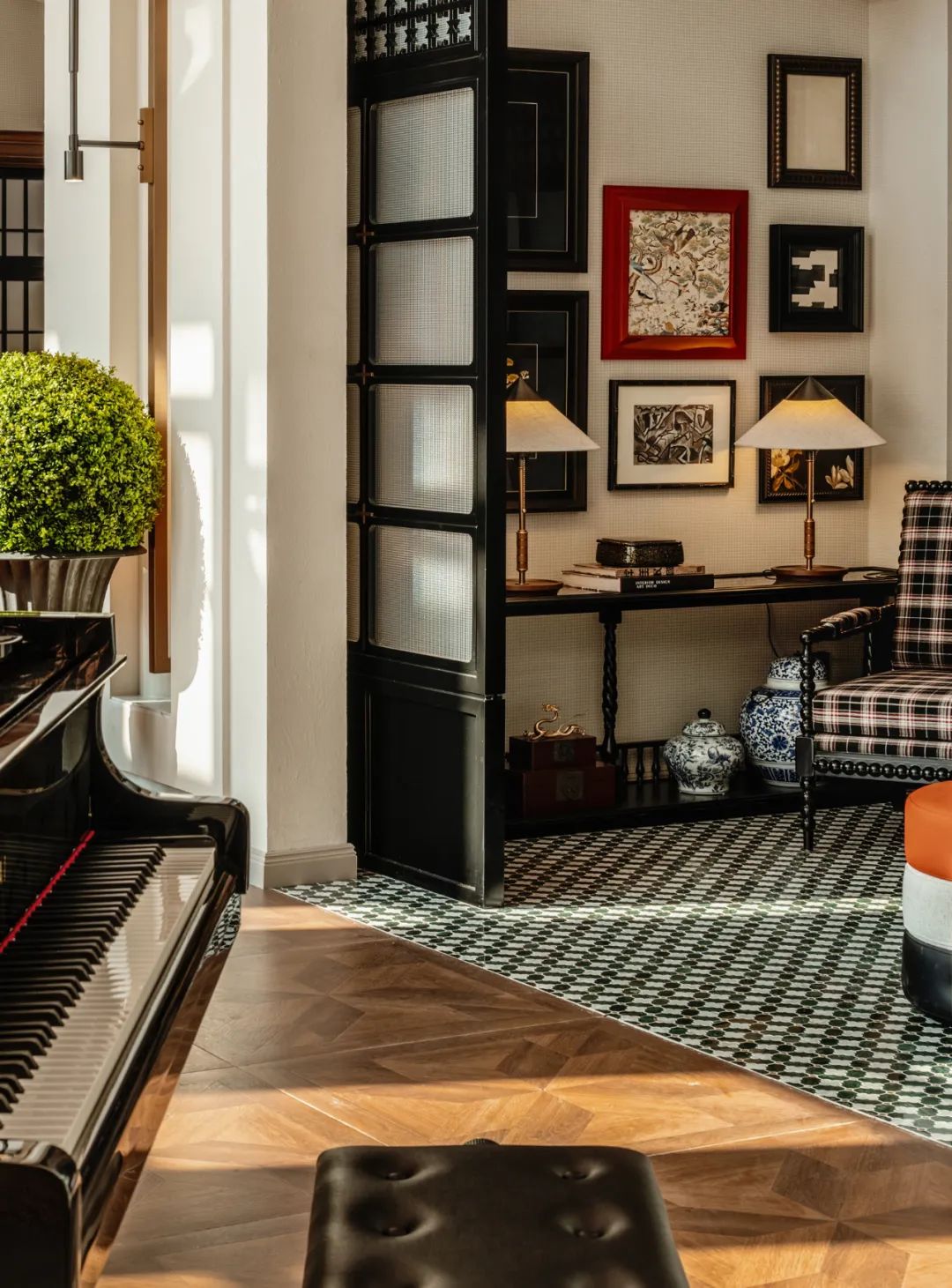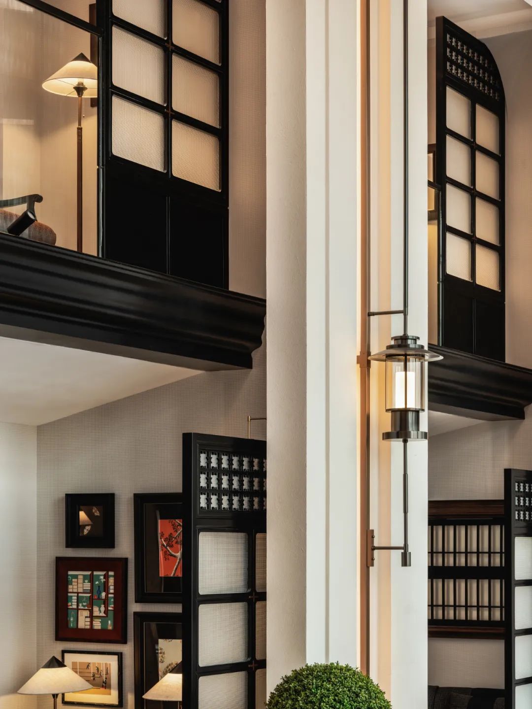 On one side of the empty hall, there is a covered bridge. There are 6 compartments above and below the covered bridge, of which 3 are guest rooms under the corridor, and 3 are piano, chess, painting and calligraphy rooms respectively.The multi-dimensional spatial hierarchy and functional support hope to present a richer and more interesting customer experience.