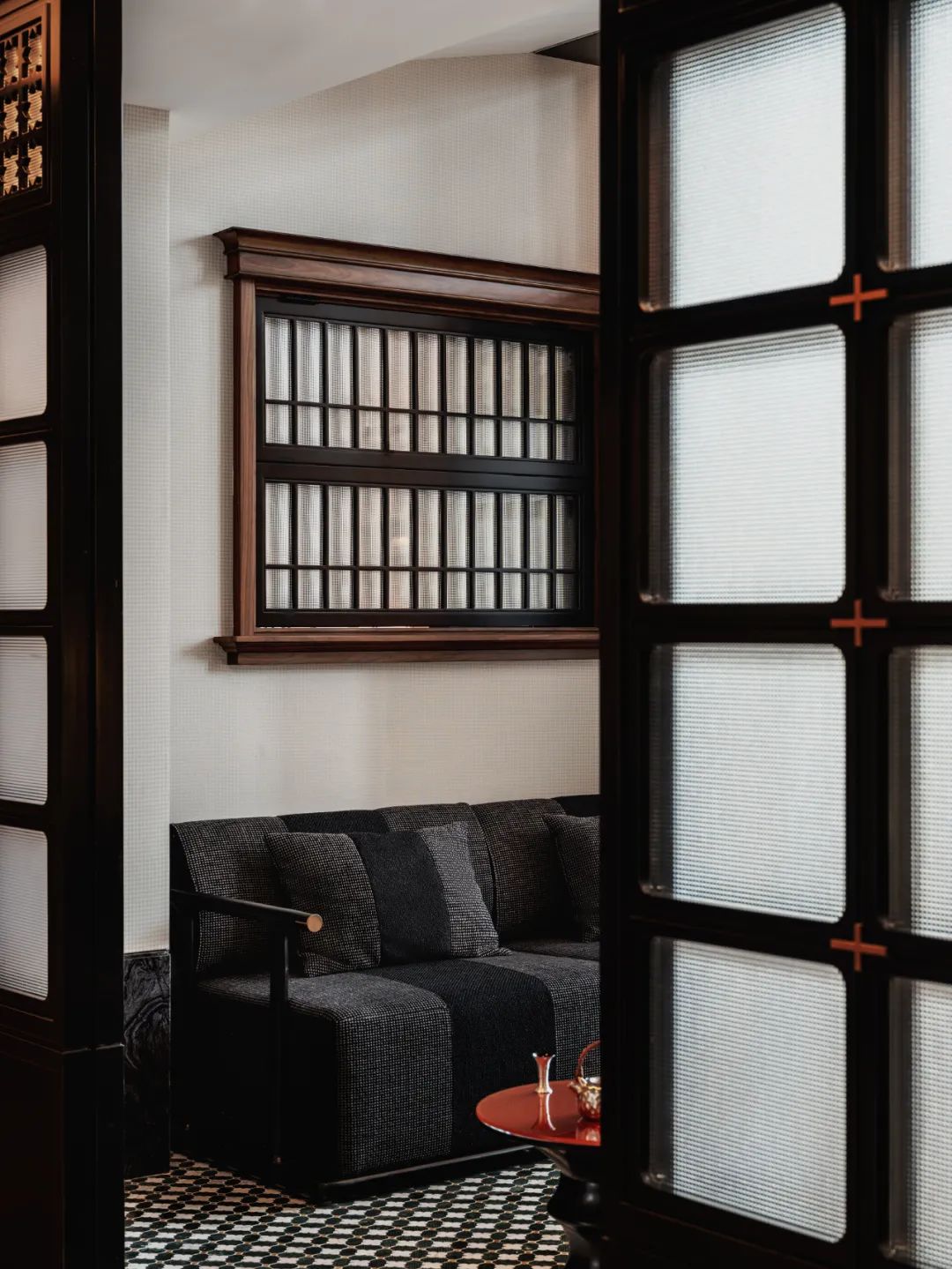 原建筑入口直连大堂,如市政建筑。为营造更有安全感和隐秘感的空间层次,提升客户体验。重新规划了客户动线,由序廊开篇,经前厅、过厅、环廊之后,抵达空间的汇集处——百合堂。这里是客人社交,聚会的开放空间。一侧与室外花园无缝衔接,另一侧是与阁楼卡间融合,百合堂前后两端分别是贵宾会客室与宝宝护理中心。