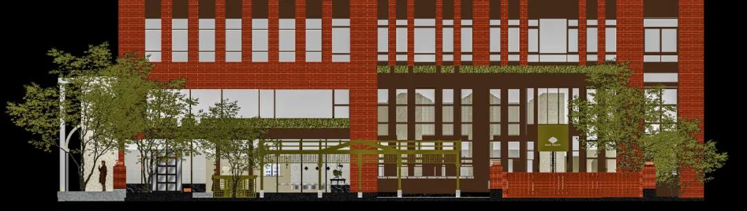 百合园是室外场地,由一园一亭构成,园子里满是花草树木,亭子里是蓝百合家人们相聚的场景。百合园与室内交融,阳光和空气从园子里蔓延进室内,室内的人满眼的青绿诗意。