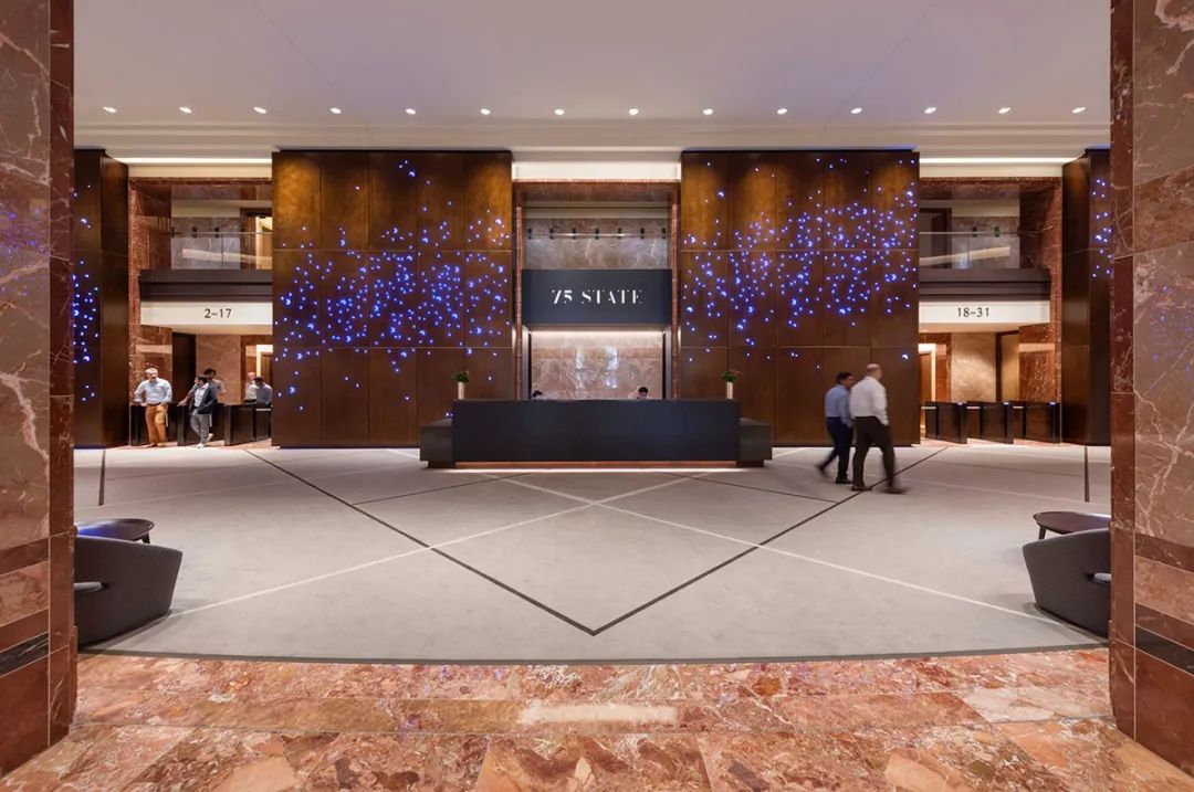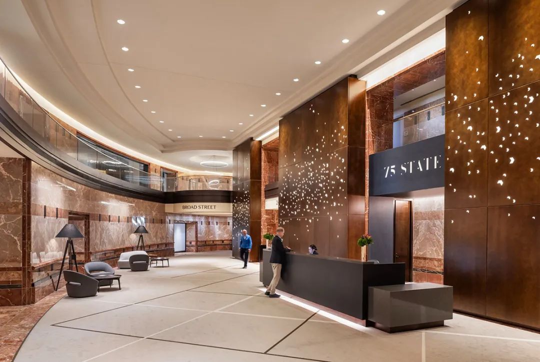 为了向租户提供卓越的设施并保持强大的市场竞争优势,Rockhill 管理公司对位于波士顿市中心金融区的甲级写字楼 75 State 展开了一项雄心勃勃的翻新项目。该项目全力改造大楼利用率不高的屋顶露台,并为陈旧的传统大堂注入新的活力。Rockhill委托 NELSON Worldwide设计团队对大楼进行战略性重新定位,从而提升并重新定义现有大堂、会议中心、休息区和屋顶露台等空间。