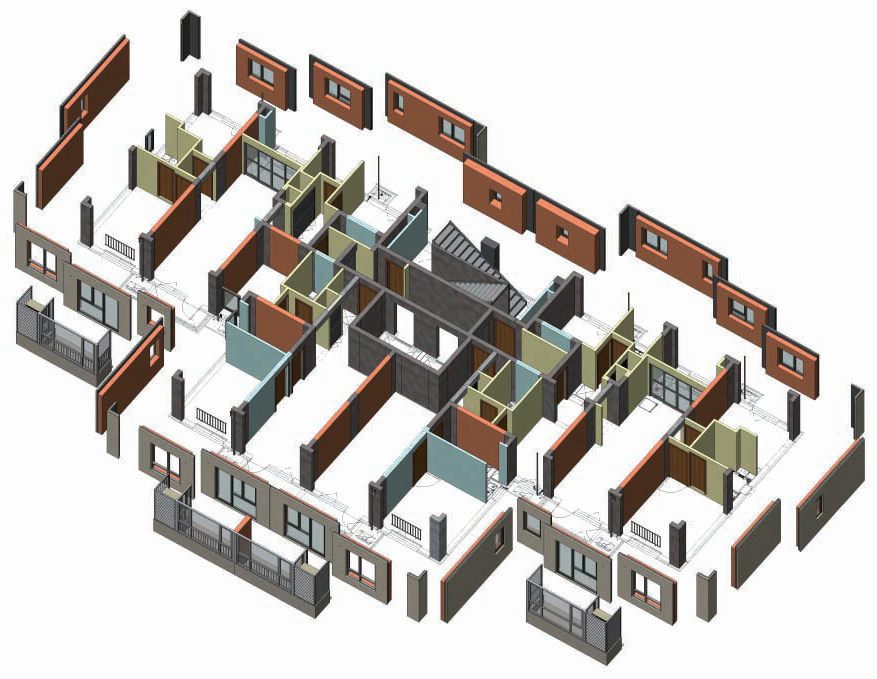 在装配式建筑技术的设计中,产品设计和全生命周期服务带来的附加值越来越高。在该项目中,通过BIM可视化设计,优化设计单元平面组合关系和立面表达,科学拆分和可视化表达预制构件,并赋予信息属性;优化机电管线布置及点位精确预埋;优化预制构件间、预制构件与现浇节点间设置;进行整体化及结构装修一体化的精装修设计。