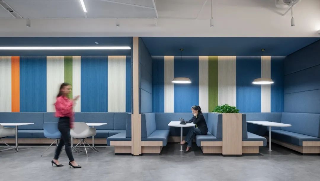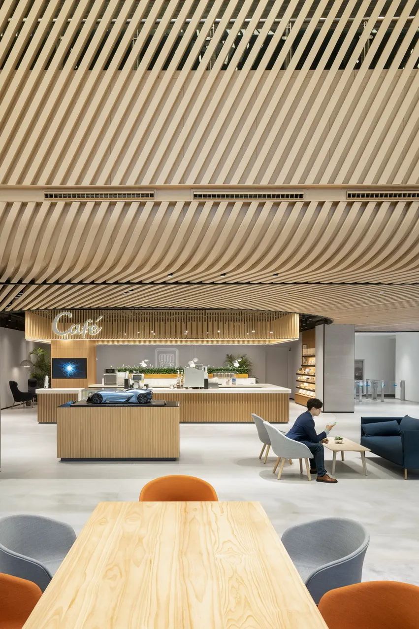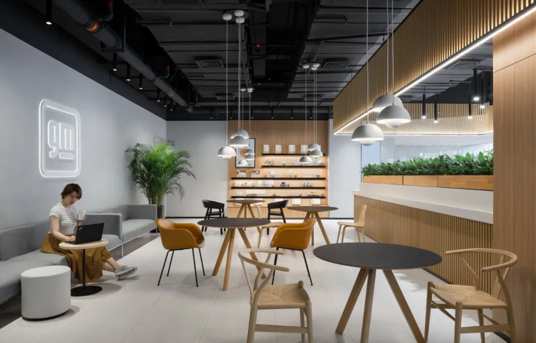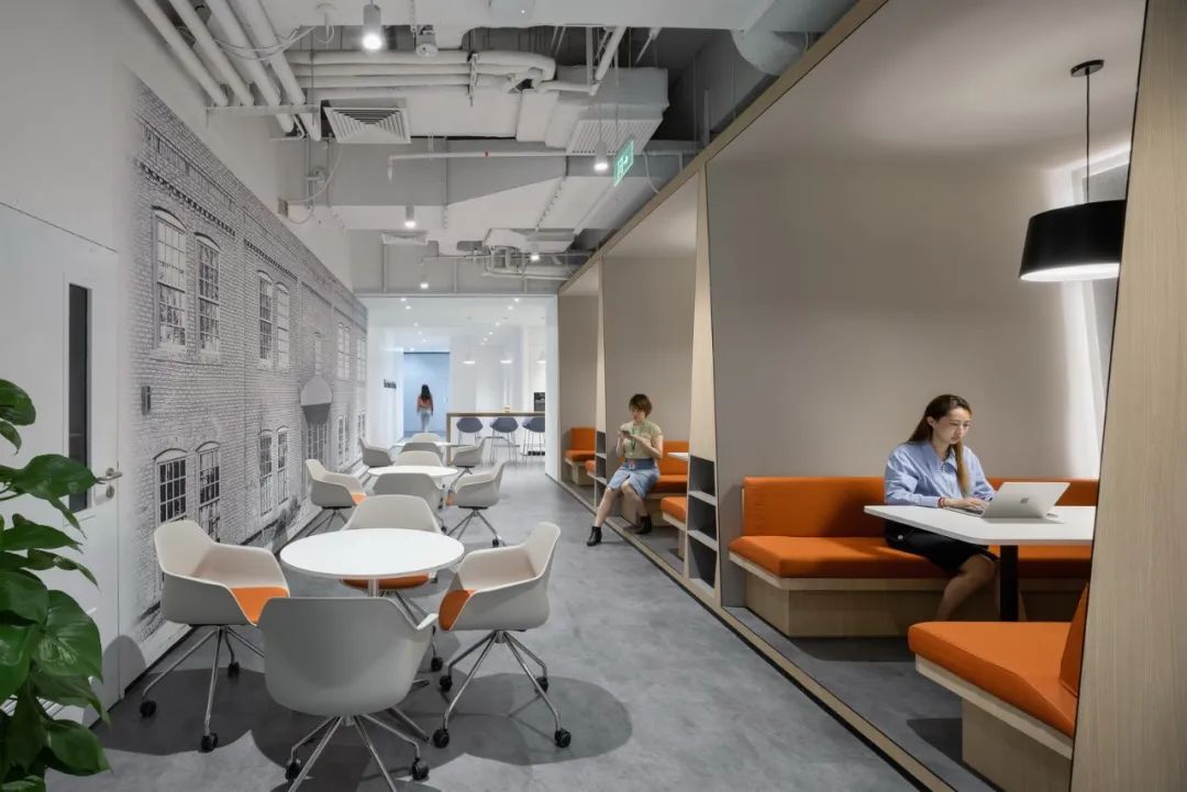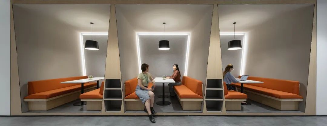 到了办公室,社交和办公场合散落到了各个角。每个人都能在空间中找到自己心意的角落。