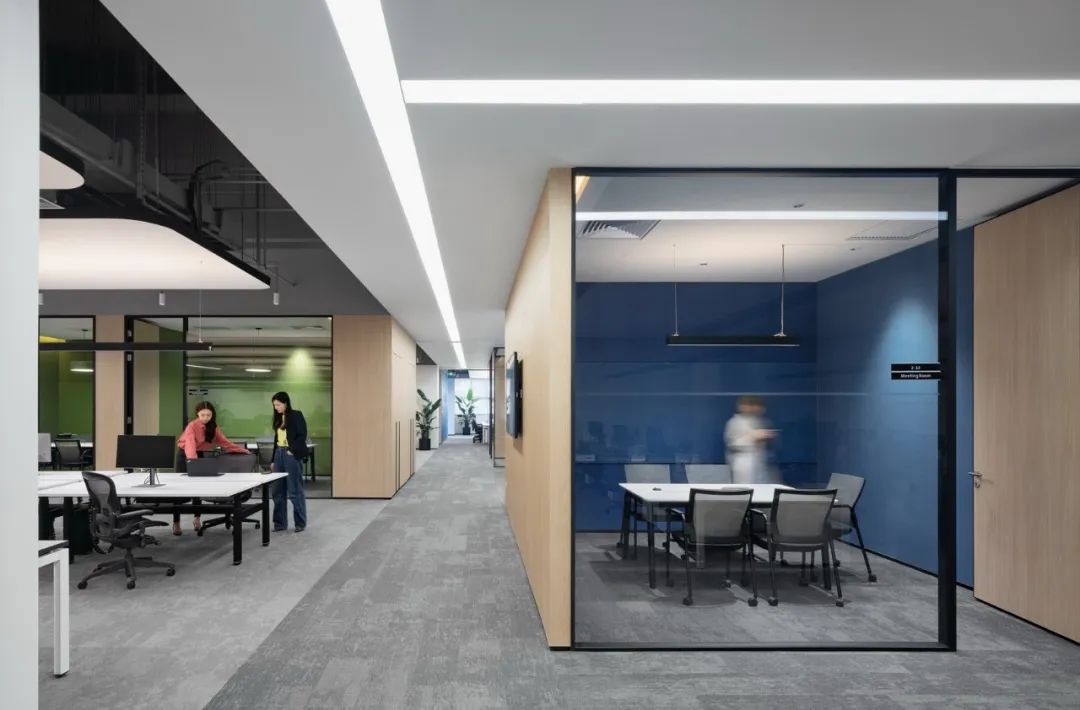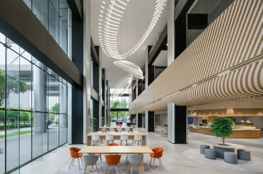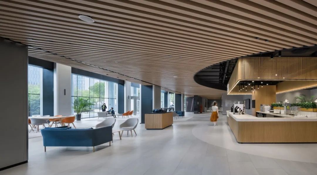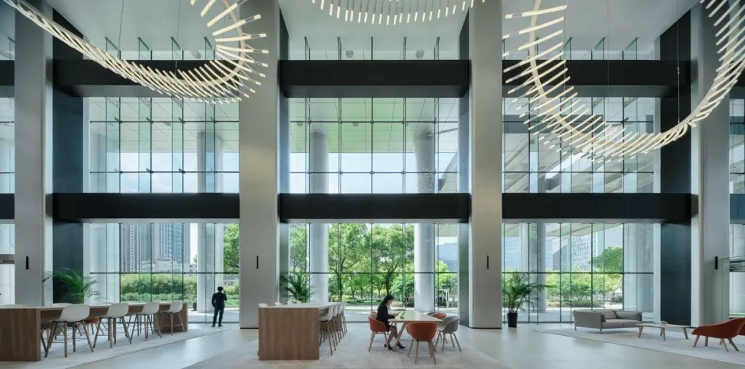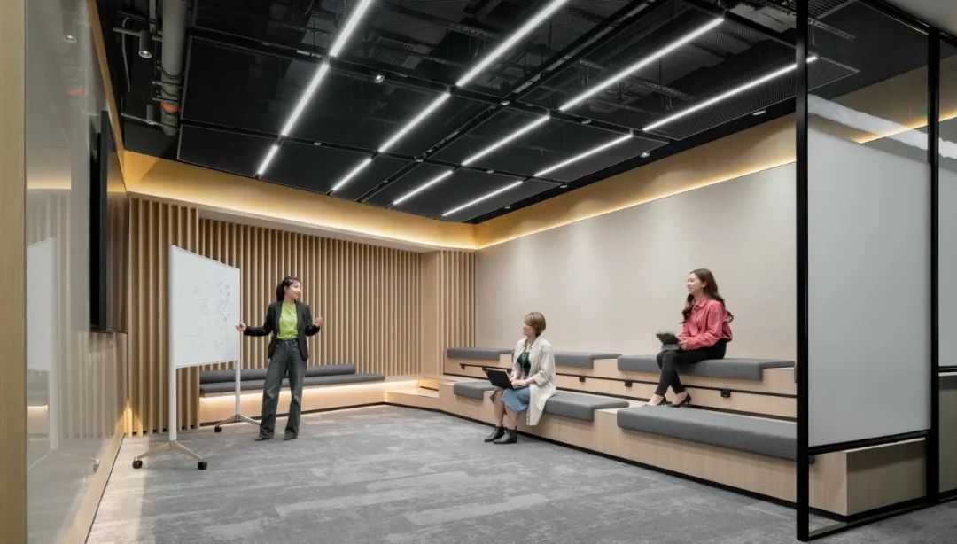 到了办公室,社交和办公场合散落到了各个角。每个人都能在空间中找到自己心意的角落。