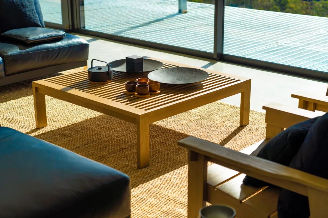 室内装饰简约而优雅,东方风格的设计旨在与自然和谐共处。宽敞的客厅配有大面积落地窗,使自然光线充盈整个房间,同时让住客时刻欣赏到窗外的美景。室内的家具材质与自然色调的完美融合,散发着温暖和谐的氛围。起居室、卧室和榻榻米空间均采用了白色和炭黑色棉麻布料的装饰,在厨房、餐台和卫浴空间则选择了纯亚白色的石材。建筑的户外墙面的材料均选用了深灰黑色Monument色,使建筑尽可能地融于环境,而每个榻榻米的外墙都选用了锈钢板来包裹,让三个榻榻米的体量在整个建筑色系中跳脱出来。度假屋装配有现代化设备,如空调、地暖、名牌炉灶、烤箱、冰箱和洗碗机,让住客们轻松准备和享用美味的家常餐,同时,就餐区的窗外景色将为住客们的用餐时光增添一抹美丽的背景。The