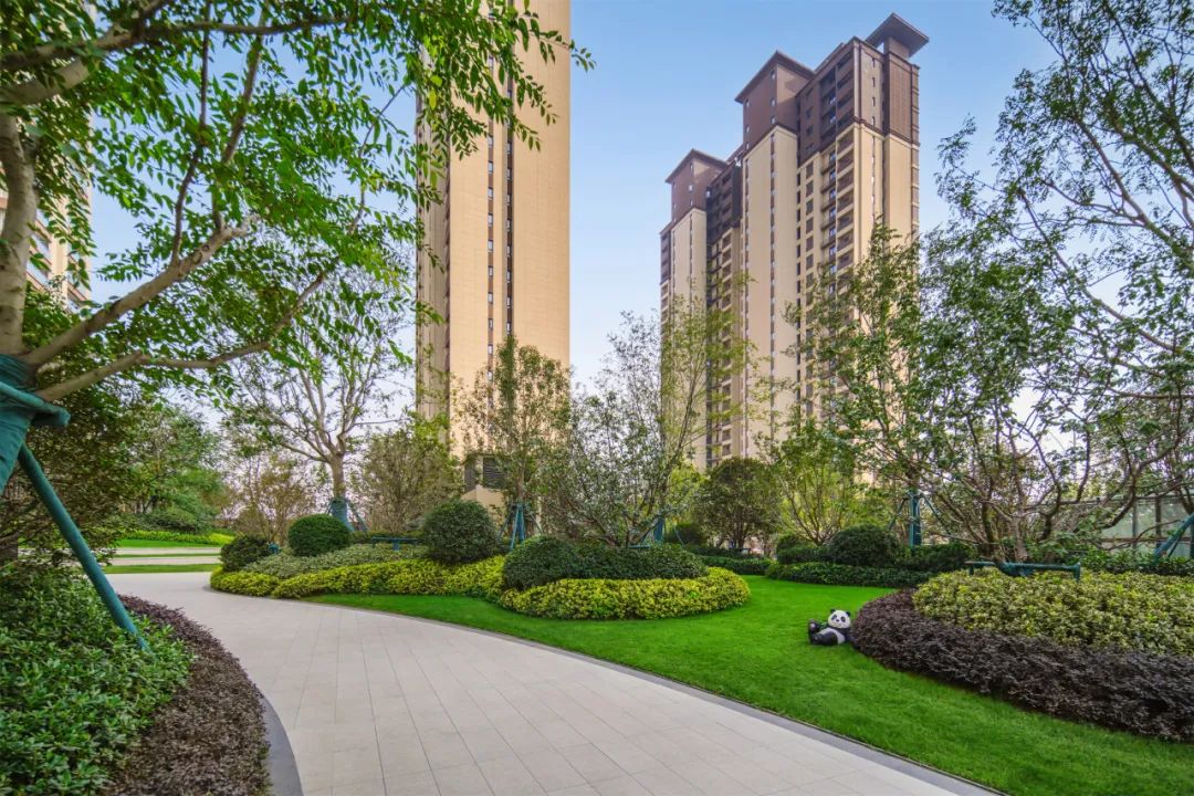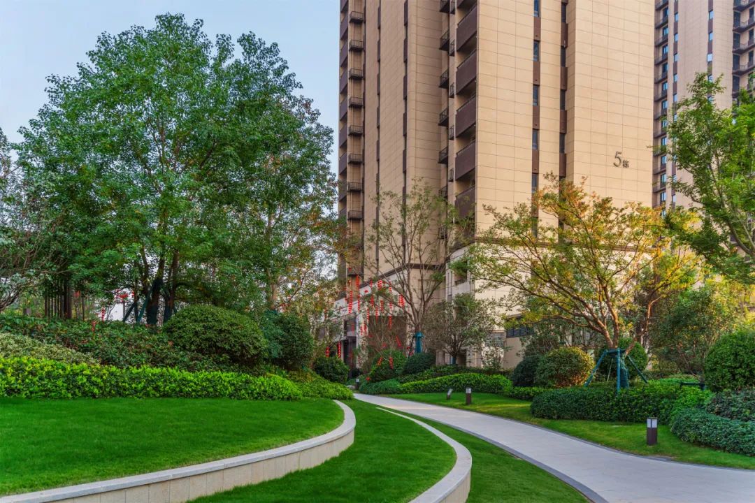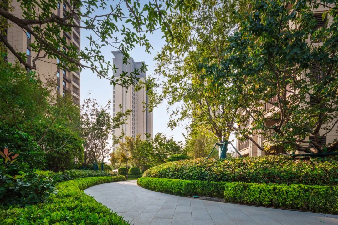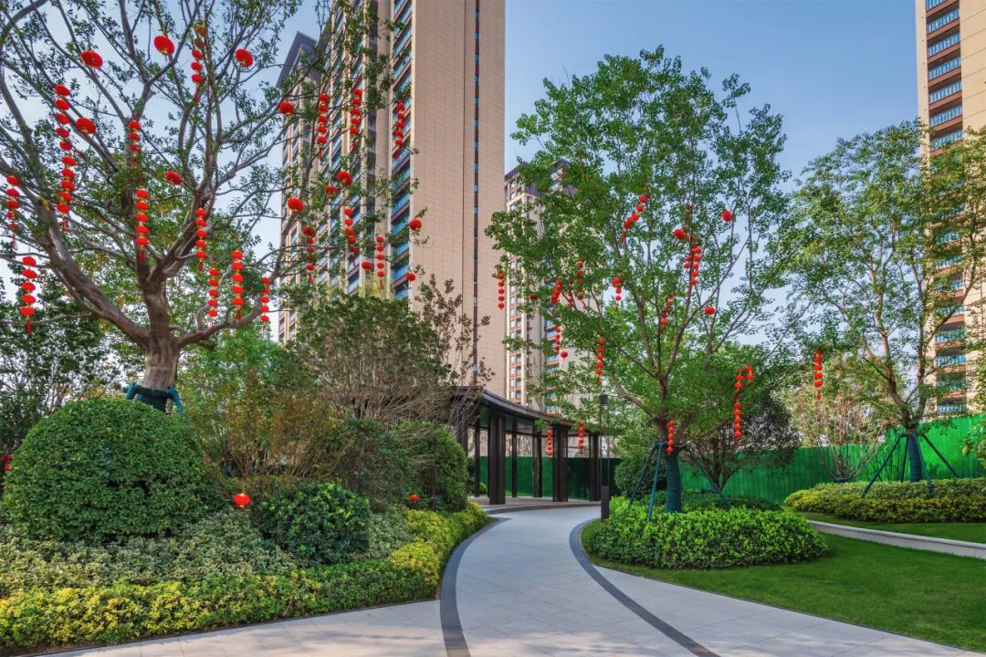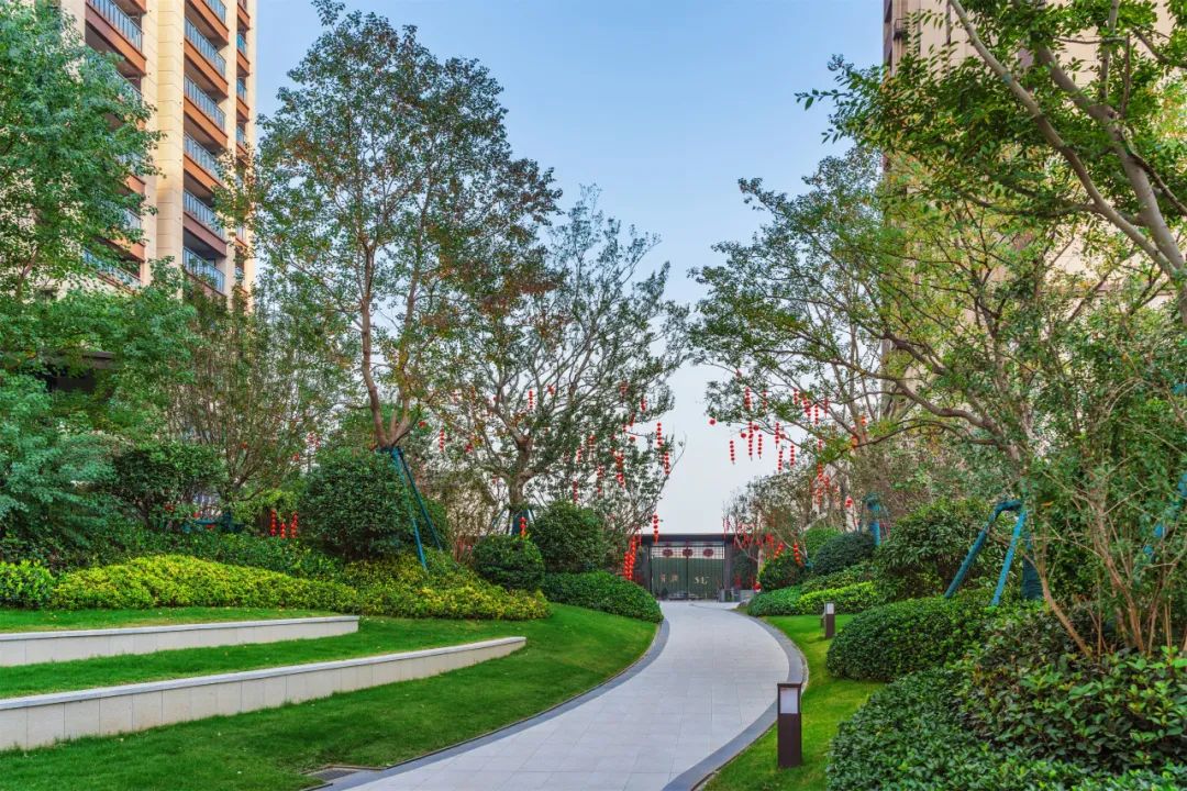 项目拥有极高的绿化覆盖率,在植物的配置上,根据时节变化辅以不同植物树种,确保四季有景可观、四季有花可赏。春有百花缤纷,夏有绿荫浓浓,秋有银杏披金,冬有腊梅如雪,四季绿植相宜。移步异景,为居民提供了一个宛如生态公园的居住环境。