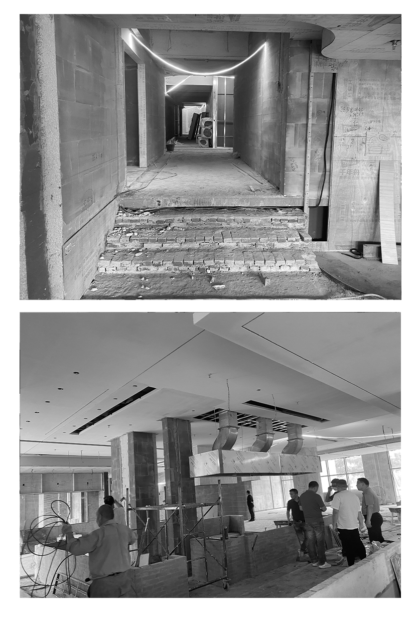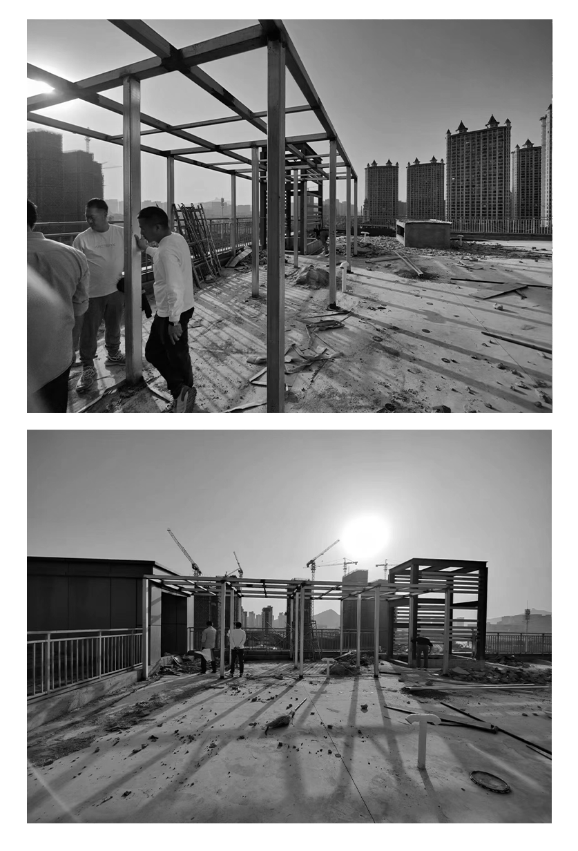上图:原场地与施工过程