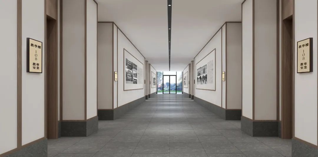 专业教室使用生态稻草漆做为主材凸显了空间内部的禅意特性,局部加以木材点缀空间色彩,整体给人以温润儒雅的视觉感受。
