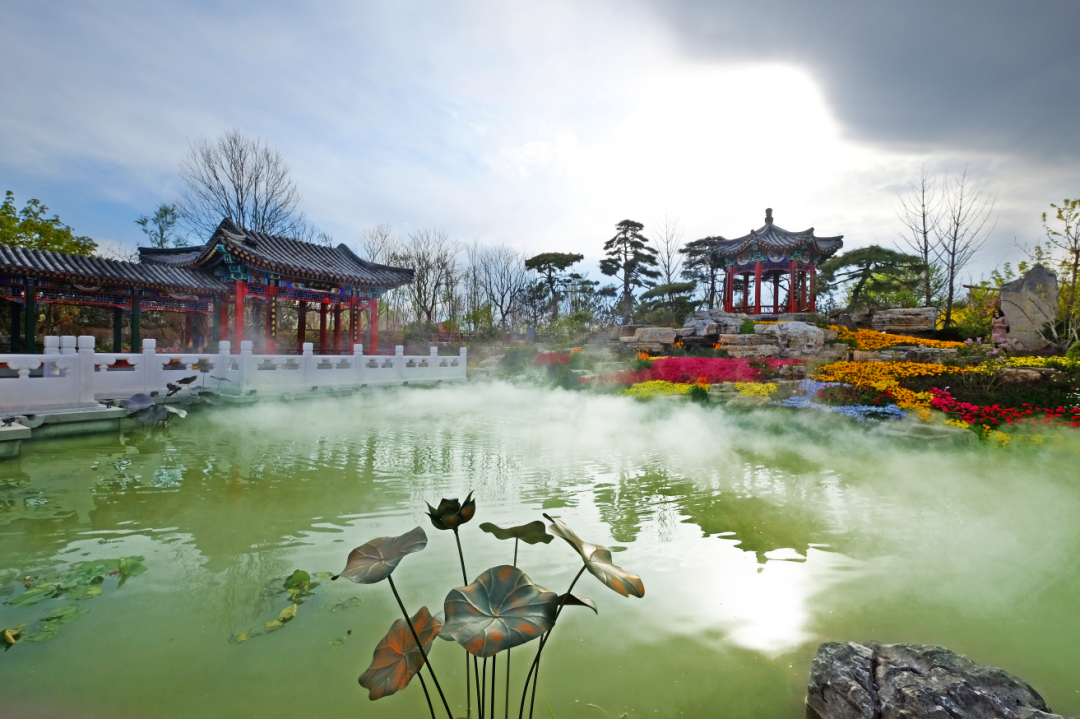 园中广泛种植市花月季和菊花,并在不同时段展出牡丹、芍药等传统名花,园中还保留了一棵树龄近百年的原生柳树,古城长绿、生生不息。