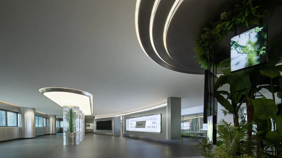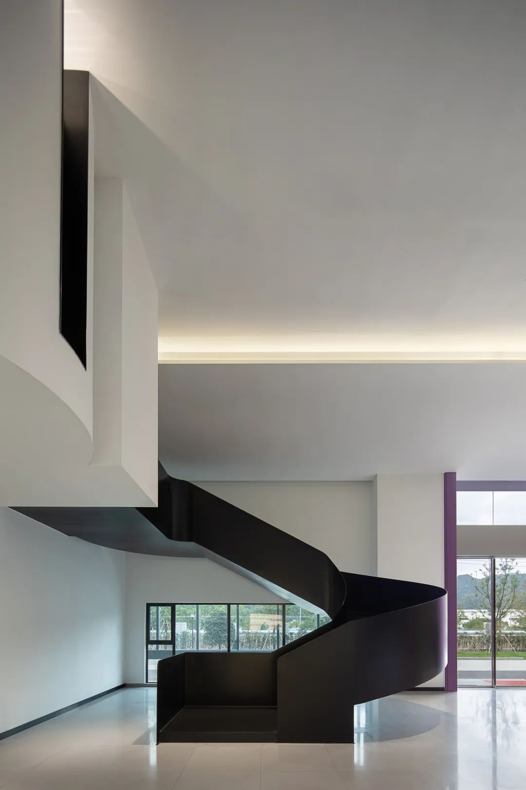 在现代化工厂的多功能复合空间设计中,旋转楼梯不仅作为垂直交通的核心元素,还巧妙地融入了石斛文化的展示与工业旅游的体验,成为连接不同楼层功能区的关键节点。