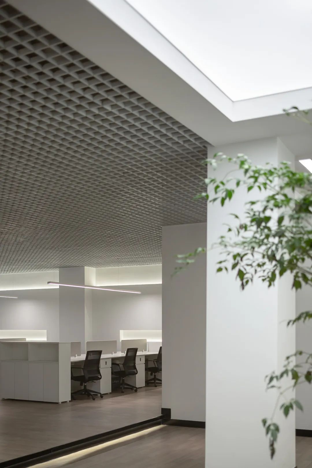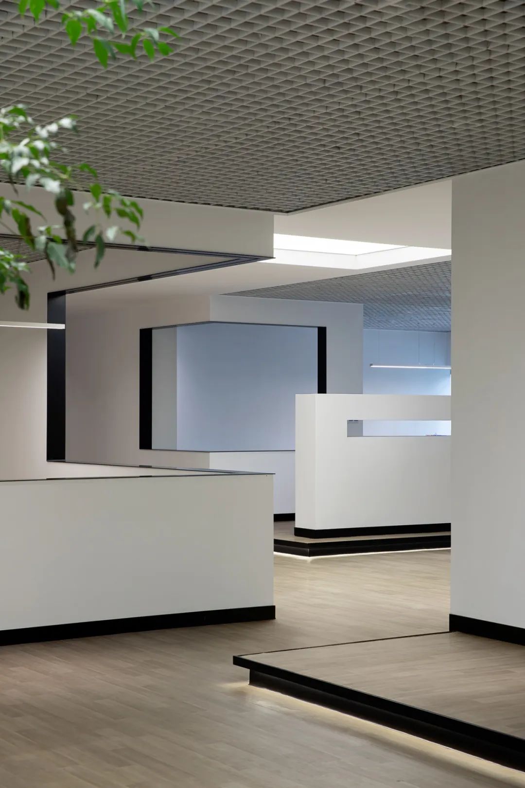 在后疫情时代下的办公区采用集约式、低能耗、多元化空间组合。恰到好处的留白达到感官的统一性与均衡感。为置身其中的员工提供开放、现代化且高舒适度的办公环境。