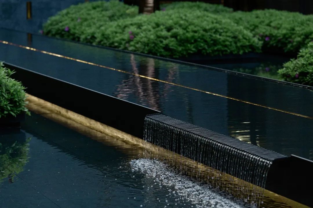 入口空间是仪式感的开始,设计溯源东方传统文化精粹,构成严谨有序的入户礼遇。以江海为首,静谧水景的形式抽象于前场空间中,繁花灼灼,流水潺潺,通廊漫漫……江海、峰岭、序曲一气呵成,在视觉上充满悠然感,让居者与访客以悠然的心态一览秩序与美感,呈现艺术气质浓郁的昭示界面。
