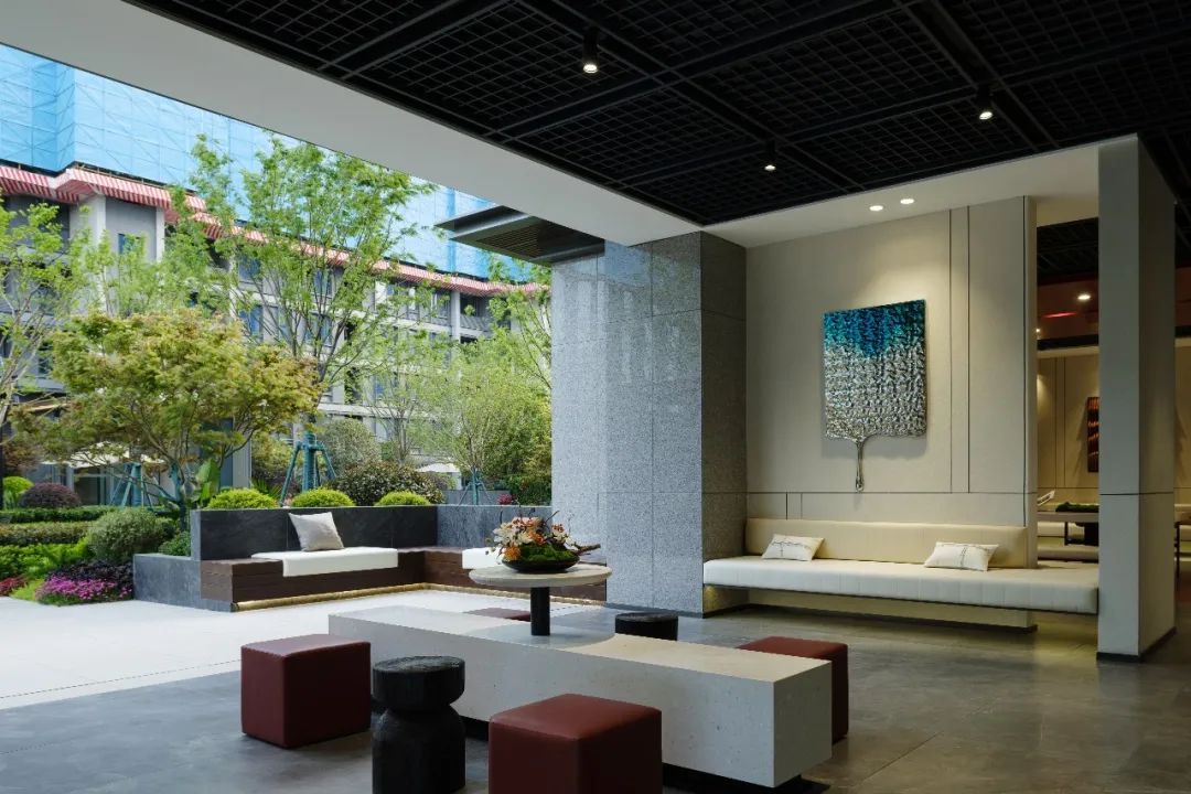 舒适无阻的户外活动空间,让生活如阳光般细细流淌,奏出雅致舒心的韵律。架空层是理想的公共社交场所,也是业主、社群的“第二客厅”,设计洞悉全龄客群的真实需求,为未来社区模拟生活场景和状态,在注重空间艺术气息营造和空间体验的同时更强调实用性和互动性,让快乐可以落地生长,让美好可以梦想成真。当设计赋予现代生活空间以艺术美学的时候,他并不是在设计边界,而是打破层层想象的桎梏,为生活的气质创造出无限可能,让自然的呼吸浸染日常生活。从社区出入口到景观归家轴线,延伸至单元入户,在前进中感知典藏仪式的精粹、百川归海的风韵,在自然中收获静谧隐士的底蕴。以江海的气度,沿袭文化的底蕴,打造“浸染于自然,清雅于生活”的理想人居。从方案图纸到落地施工,从每一根线条的产生,都充满了理性和艺术的思考。甲方管理团队和设计团队在施工过程中以匠心精研每一处细节,保证了项目落地品质。感谢设计团队、甲方、施工方的辛苦付出,大家通力合作,以匠心,筑造美好生活的更多可能。室内设计:广州燕语堂装饰设计有限公司、上海大研建筑设计咨询有限公司