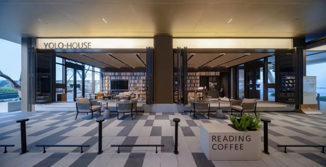 【社区堂客厅(4号楼)首层YOLO-HOUSE& REANDING COFFEE与入户门头联系】
