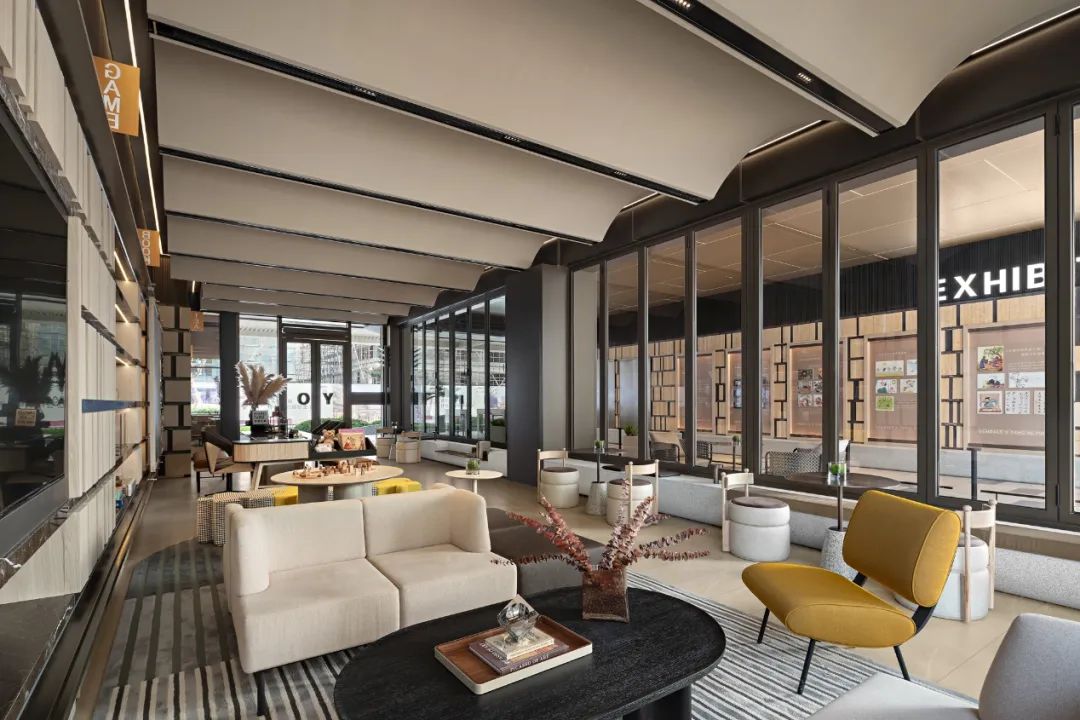 在金地「堂客厅」中,共享长桌、社群集合点、漂流书屋、社区艺展等几大空间场景,也通过社群建立运营和服务范式,以美好激发美好, 以堂客厅这一空间为序曲,开启社区的美好社群生活。