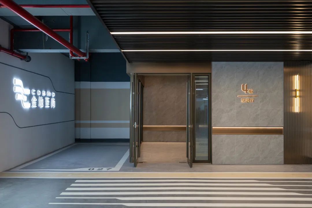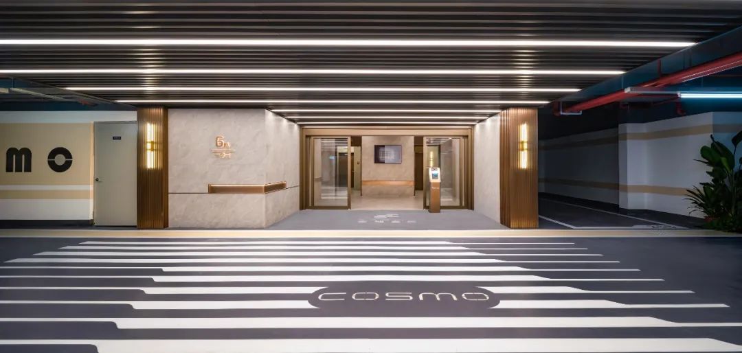 品质地库:每个楼栋配置精装大堂和落客区,结合地库标识、灯光、墙地面美化整体设计,给业主高品质的地下归家体验