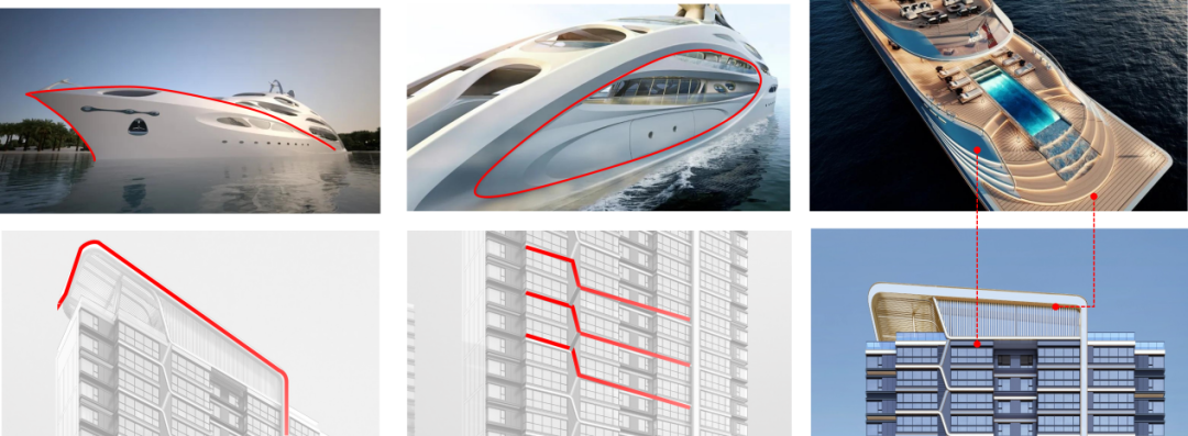 本系列产品从游艇中提取元素,形成独特的弧形建筑语言和富有设计感的手法。游艇外型的力量感与流线感,在楼体立面中得到体现,高级感的配色和游艇的有机结构也应用其中。最终使得建筑成为一个风格现代、且有极强辨识性的艺术品。