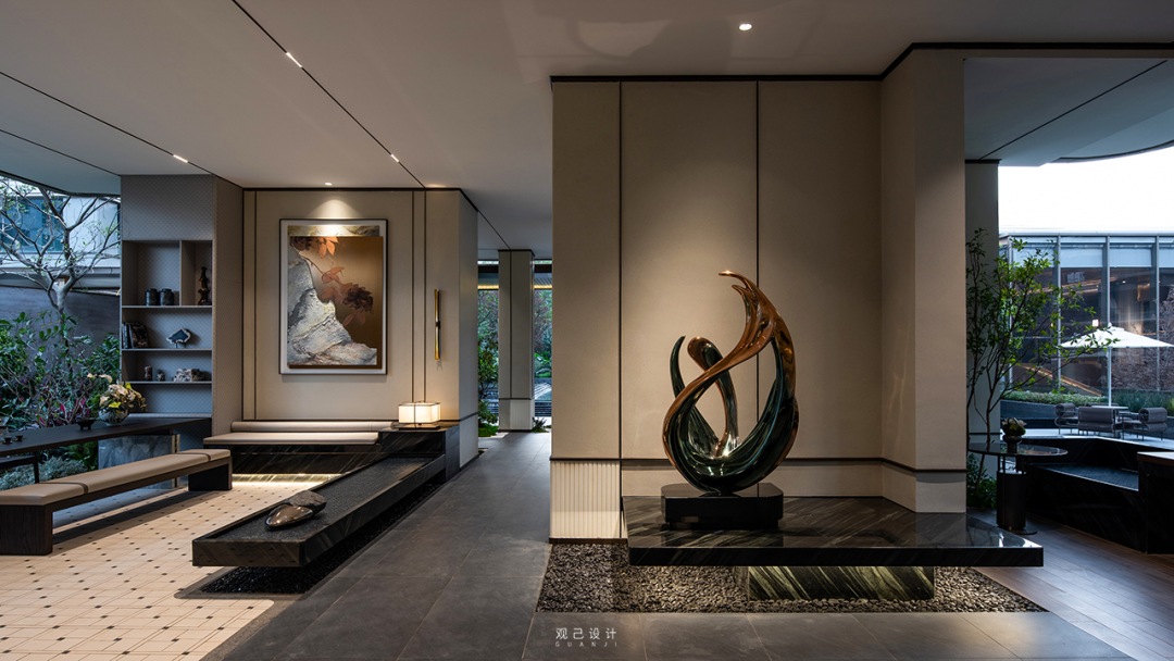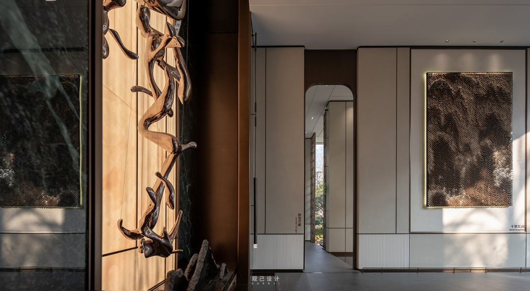 雕塑长廊与立体庭院串联,打造“可漫步的艺术馆”。