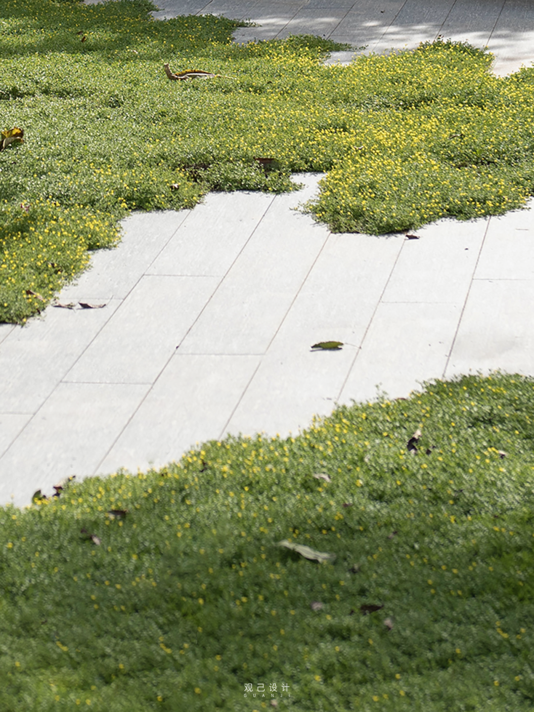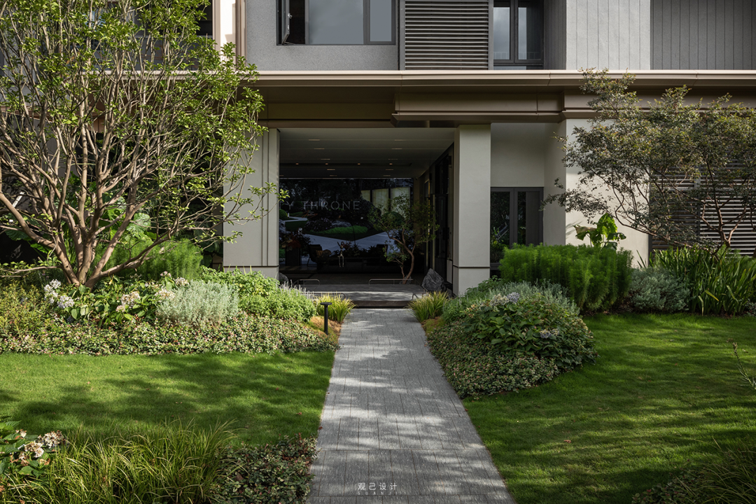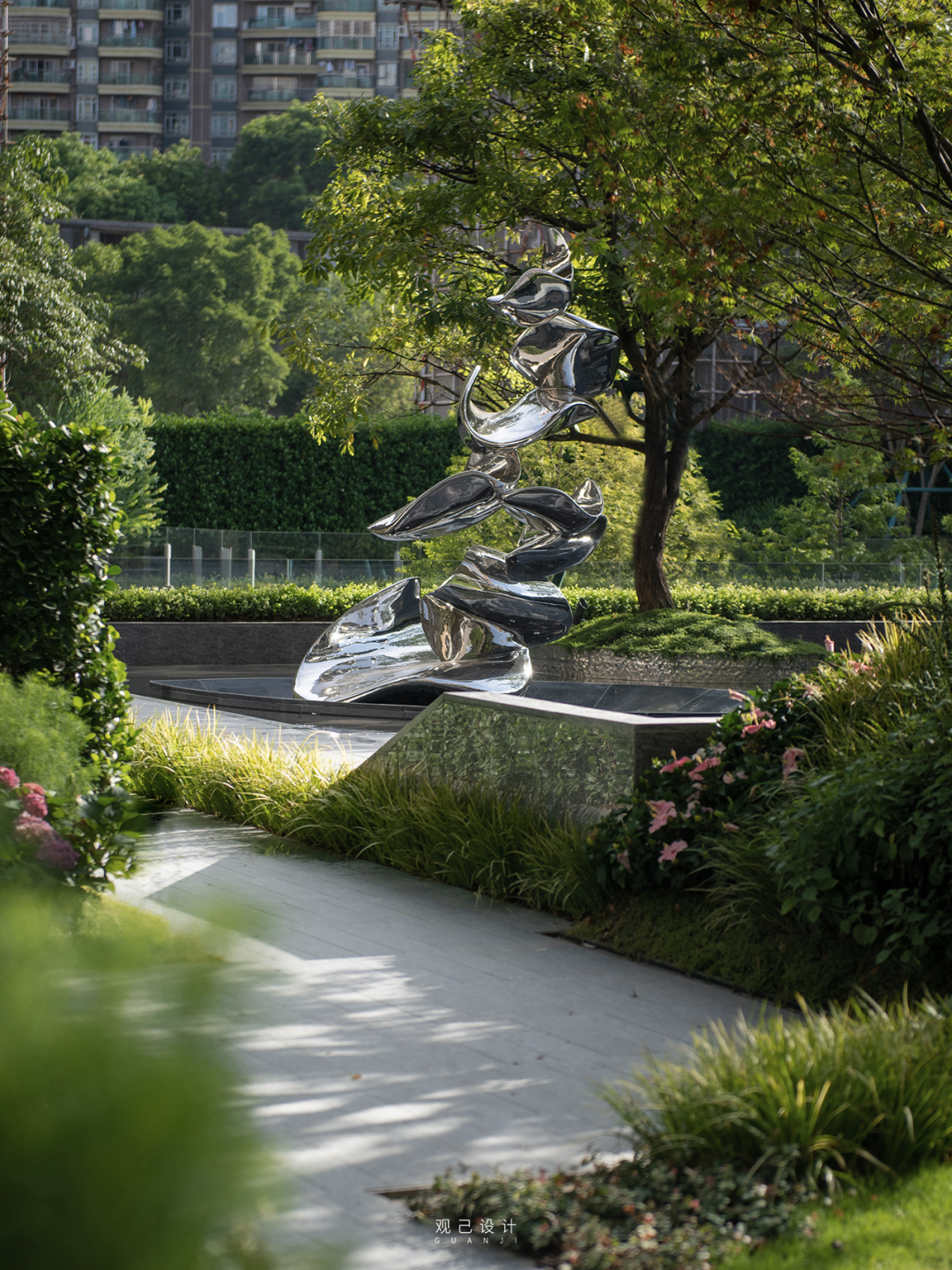 以流畅的曲线勾勒韵律之美,穿梭光影与绿意之间,石材与砾石元素展现了空间温婉与坚韧并存。