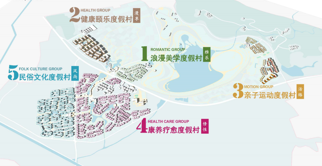 项目大规划以“山,海,田园,湖”为核心要素,打造打造热带庄园式旅游度假区,整体规划“一厅,五村,四园,一环”。以度假客厅为核心引擎,一环串联,五村联动,辐射全区域。