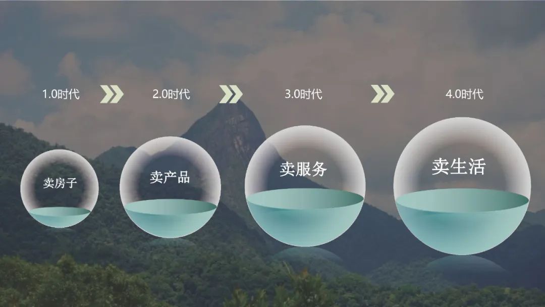 基地位于度假区首开示范区,现周边服务配套少,且缺少主题特色。传统地产项目,停留在原始阶段,1.0时代只关注售卖房屋本身,2.0时代开始关注产品力和附加值,3.0时代注重提供与生活相关的服务,本项目能否跃迁到4.0时代,将重点放在创造整体生活方式和体验上?