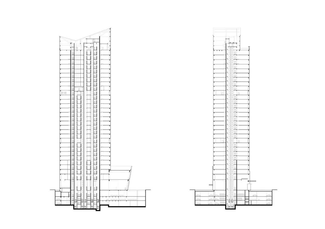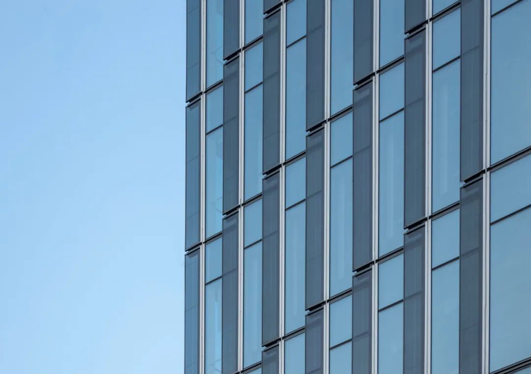塔楼的设计采用体块错层交互的方式,不仅增加了建筑的转角办公室和采光面积,还使整体形态更加挺拔高挑,展现出丰富的层次感和表现力。裙楼部分则采用了特殊玻璃材质和独特的分割设计,外观层次分明,与塔楼形成了和谐统一的整体风格。建筑入口及迎宾大堂的设计尤为引人注目,高透明度及超大面积的玻璃,组成了建筑入口的第一印象,简洁大方,通透,高科技。挑高的大堂空间和石材分割的墙面彰显出优雅大气的质感,为每一位到访者营造出独特的到达体验。无论是企业高管还是来访宾客,都能在这里感受到联投企业的实力与品位,仿佛置身于一座艺术的殿堂,感受着建筑与人文的完美融合。项目定位为“绿色、智慧、科技、人文”的企业总部办公大楼,严格按照绿色建筑三星标准设计。塔楼外立面与屋顶采用光伏面板与玻璃结合的方式,不仅实现了建筑功能与美学的完美融合,还充分体现了绿色节能的理念。主要立面设计有自然通风可开启窗扇,进一步提升了建筑的节能效果。