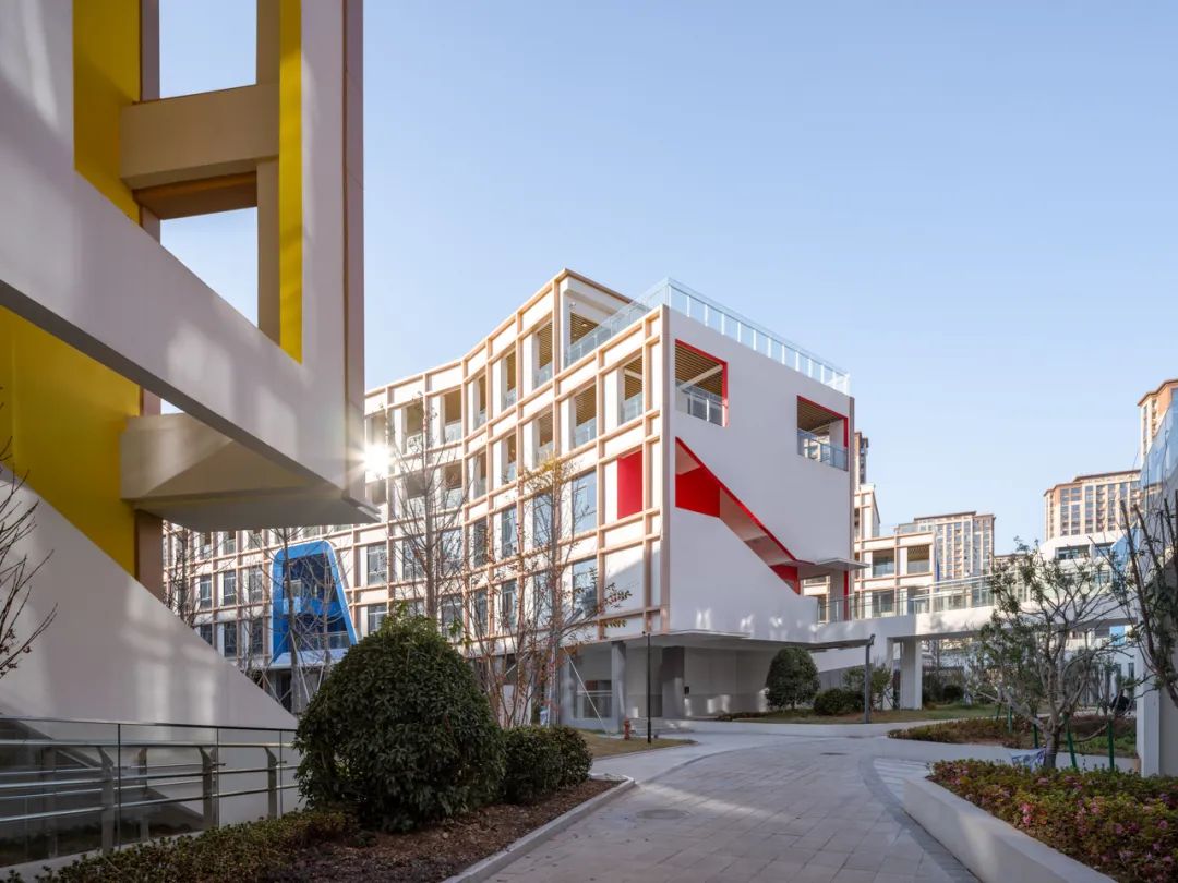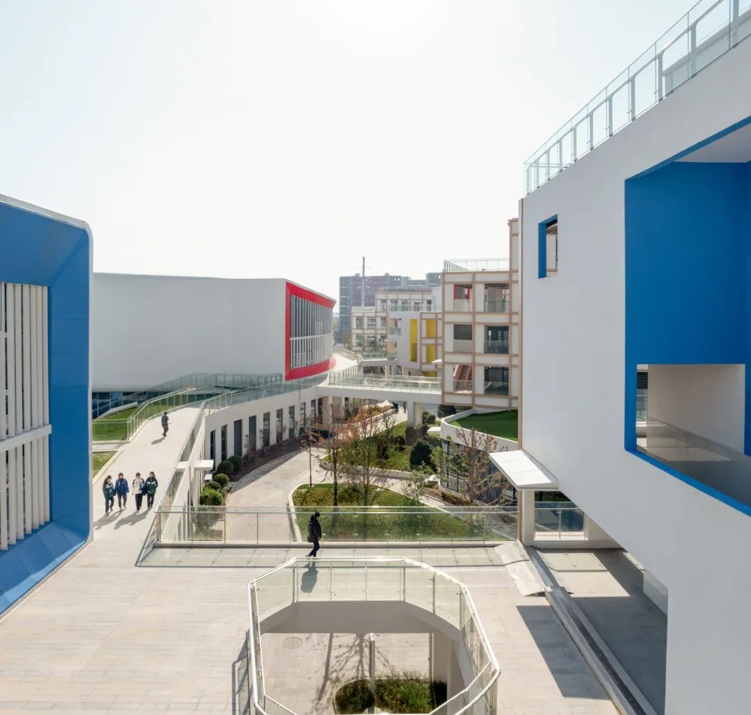在多元化教育趋势下,对“学习”方式的认知正在发生转变,校园设计也正从单一教学空间走向复合型学习场所。衢州第六实验学校的设计创新性地引入“校园街道”概念,使其成为连接多层次活动空间与非正式教学场所的纽带,创造一个充满探索、交流与成长可能性的校园环境。