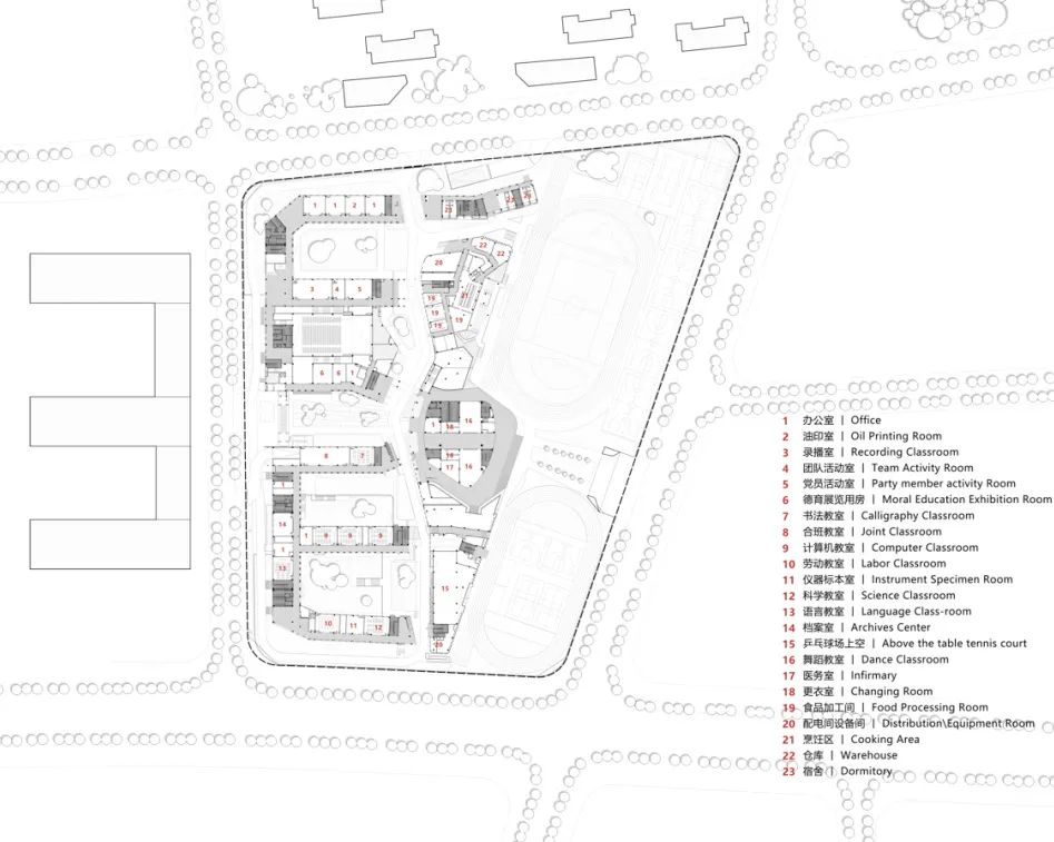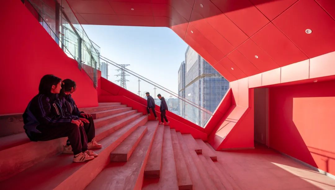 In addition, the campus features a variety of public and semi-public spaces in different scales—pocket parks at classroom entrances, gable-end alcoves at the end of corridors, and a central cluster of large-scale venues for cultural and sports activities. These spaces respond to different rhythms of school life, from in-between class breaks to during-class interactions and after-class gatherings.Connected by streets and corridors, they enrich the traditional teaching spaces with new functions, transforming them into future-oriented environments that support innovation and self-directed learning.