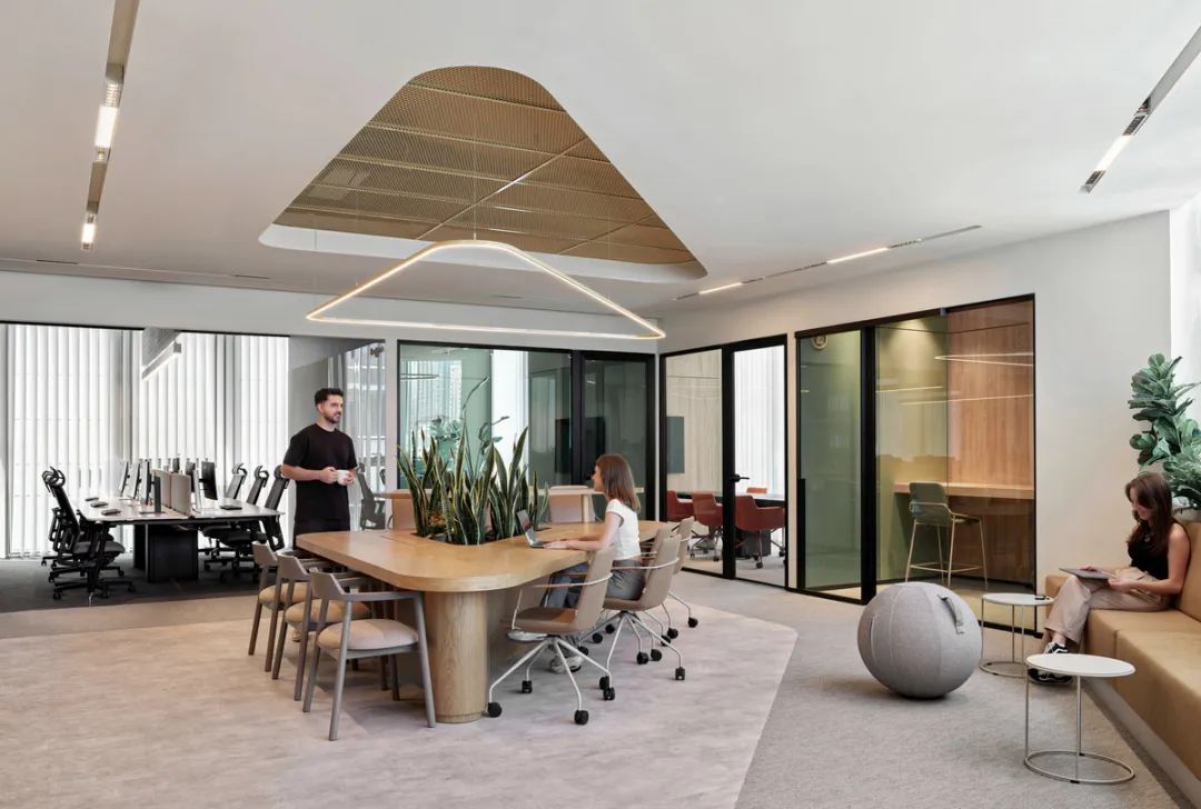 设计以员工福祉为核心,通过三大关键设计策略打造舒适高效的办公环境: