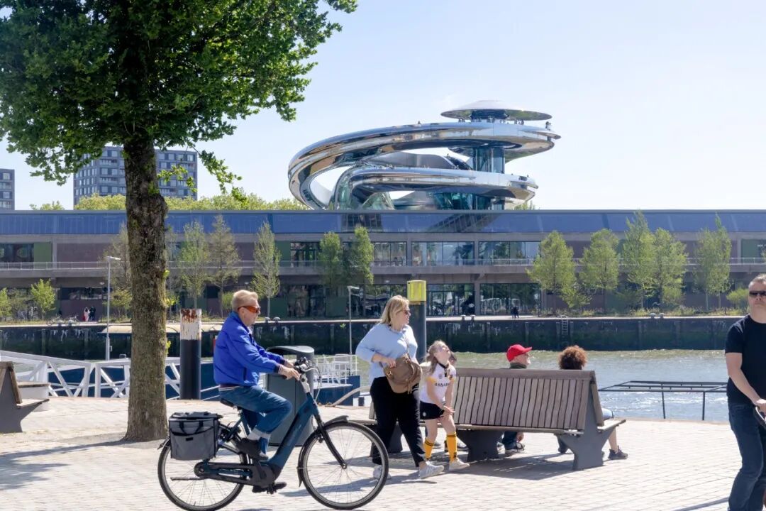 最终人们在至高点相遇,一同俯瞰鹿特丹城市及河岸的美景,仿佛漂浮于海洋之上。