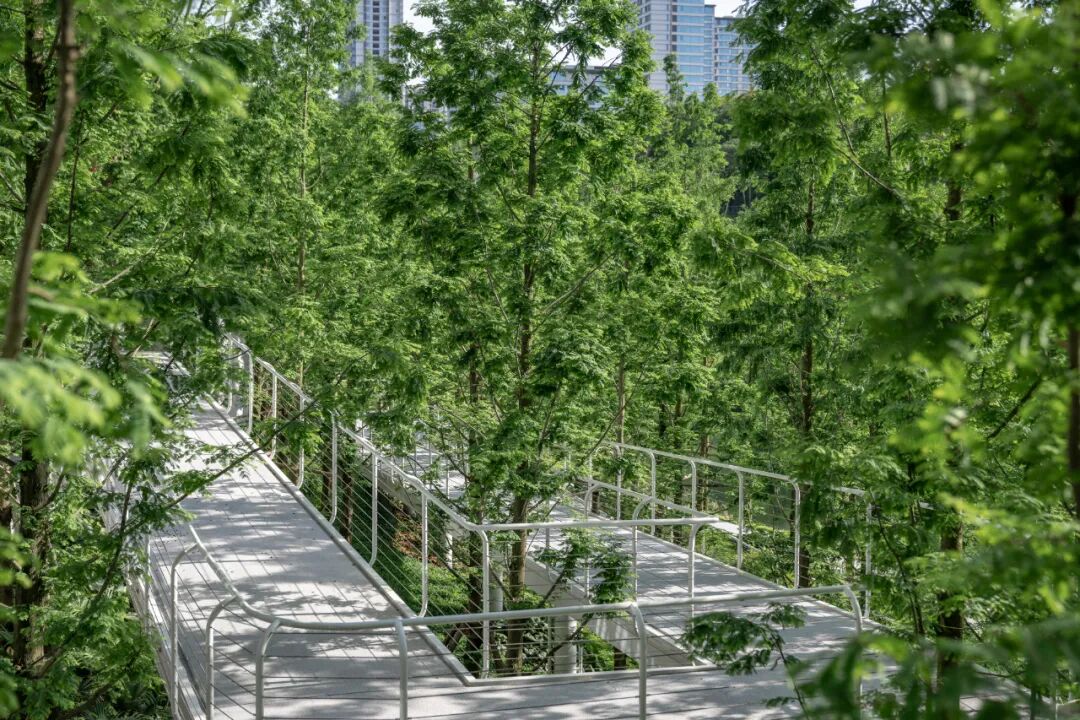 沄洲项目位于成都南部麓湖国际生态城,紧邻天府大道,周边自然条件优渥,南湖湿地公园、天府公园仅在咫尺之遥,具有良好的观景视野以及公共参与的亲水体验。在项目中,我们打造意在凸显自然之境的度假场景,通过南北中庭、临湖带及峡谷带的串联设置,保留场地高差形成自然峡谷意象,置入空中栈道解锁空间穿行体验,破解围墙实现绿地融入生活的共享……