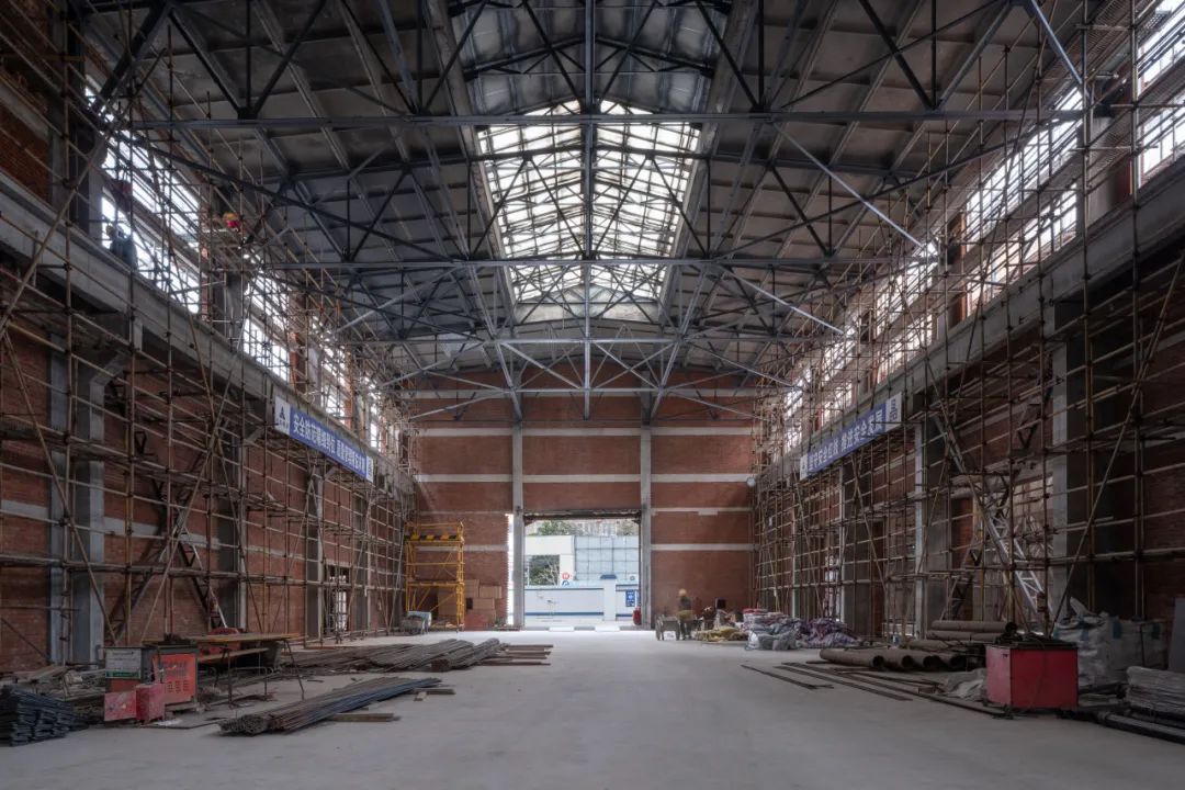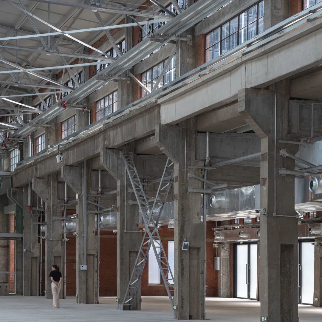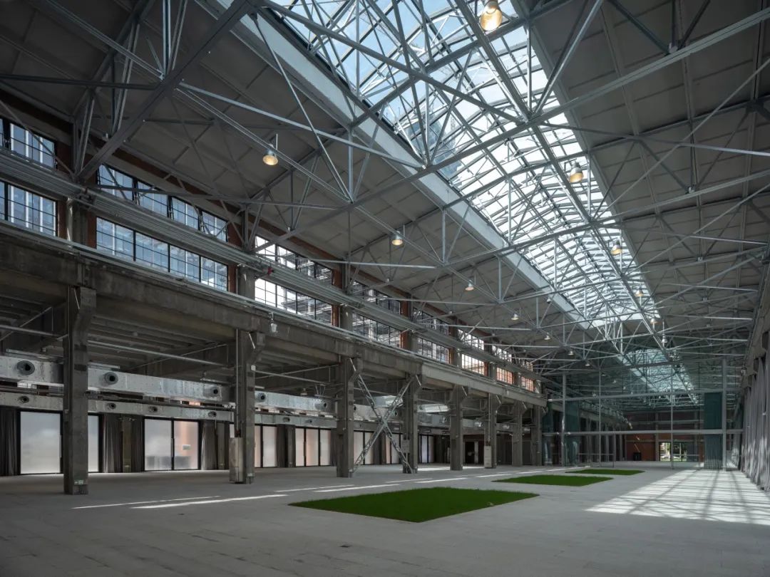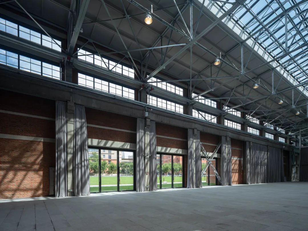 本次工程拆除了所有后期的加建,恢复了主体厂房历史上的大空间,通过玻璃隔断将180米长的厂房划分为3个不同的功能分区,但仍保持视觉连通,提升了建筑的开放性,也为未来以文化展览、艺术沙龙、主题快闪等功能提供了多重可能性。