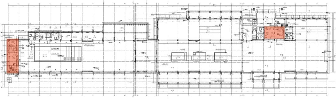 为满足空间舒适性要求,机电设备尤其是空调设备的数量多、体积大,对机房面积和层高要求较高。为兼顾厂房主体空间的完整性和未来功能需求,本期工程分别通过夹层和下挖两种方式增设2处机房,分别服务厂房东西两部分,减小管线长度,提升送风效率。