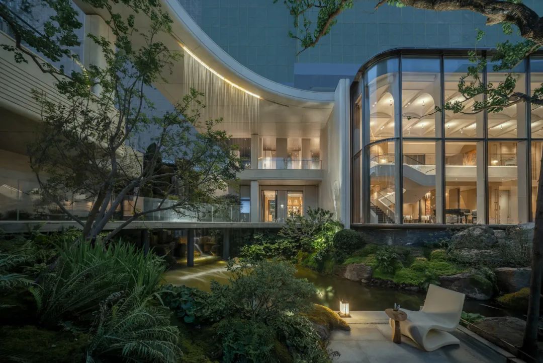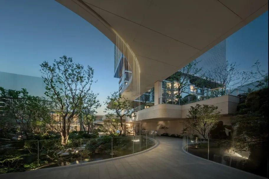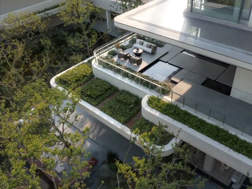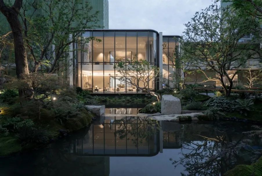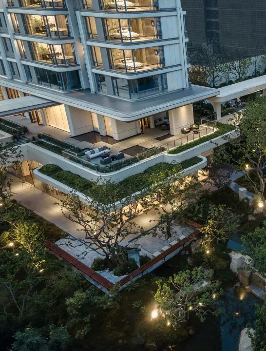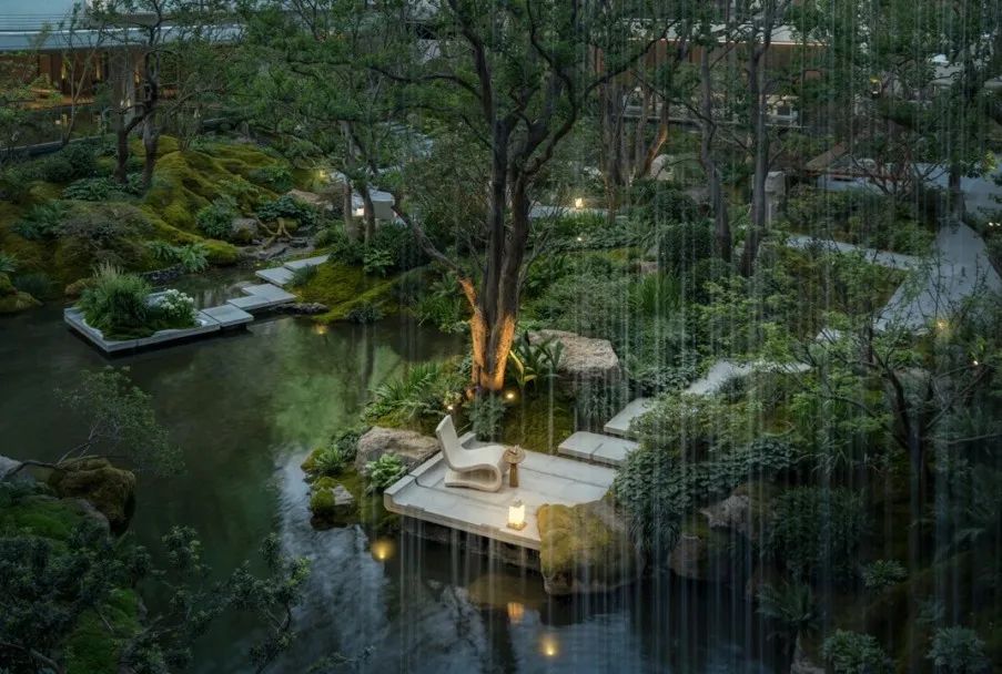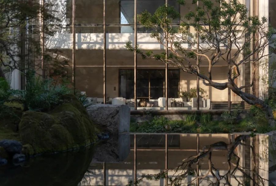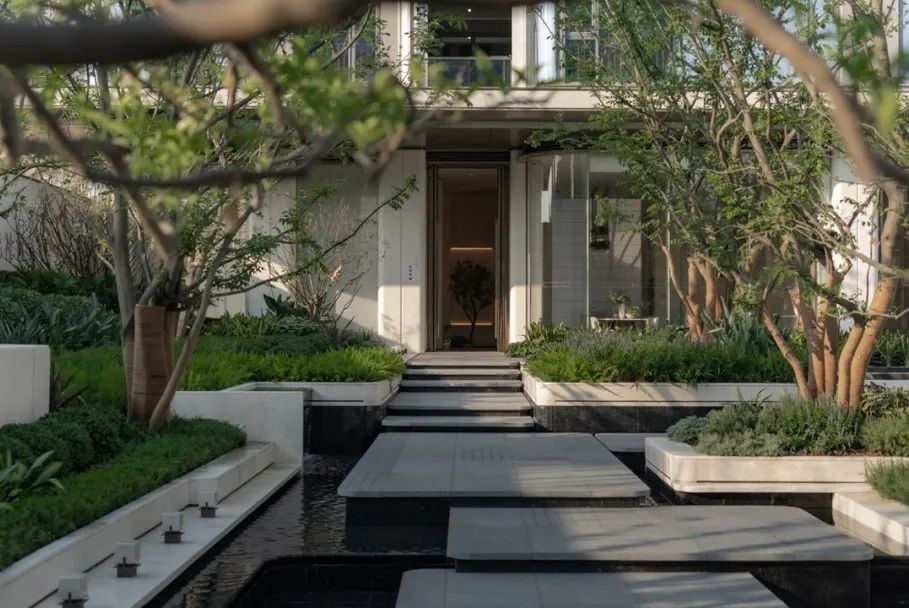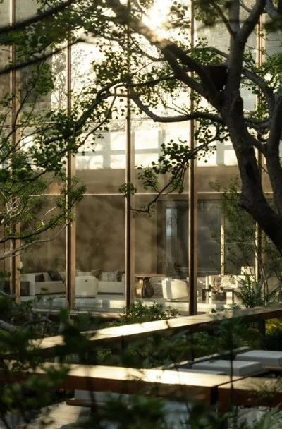 享受无界——感受自然返璞气息,做一个不假外物的自由隐士。专属会客门庭,树从下沉庭院向上无限延伸,与水景无限交融。