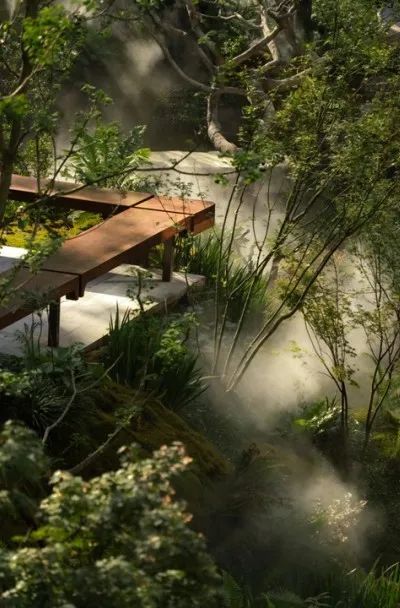 通过大面积的苔藓及蕨类植物,浅滩溪涧,再现川西秘境。